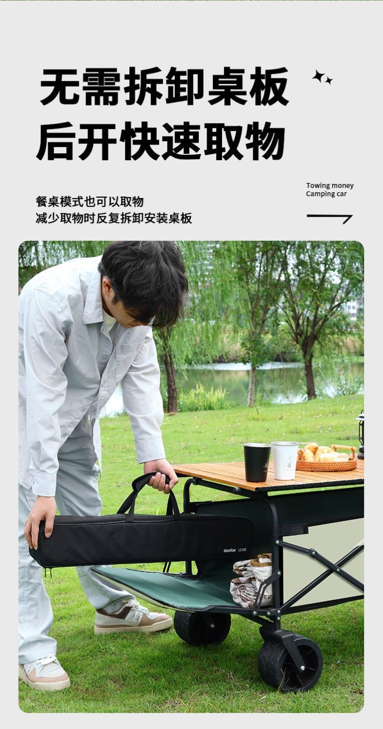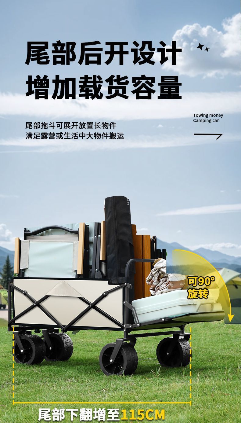 | 顔色 | 限量盛宴秒殺 營地車+加高擺攤桌子-可後繙大號坦克輪帶刹車(卡其) |