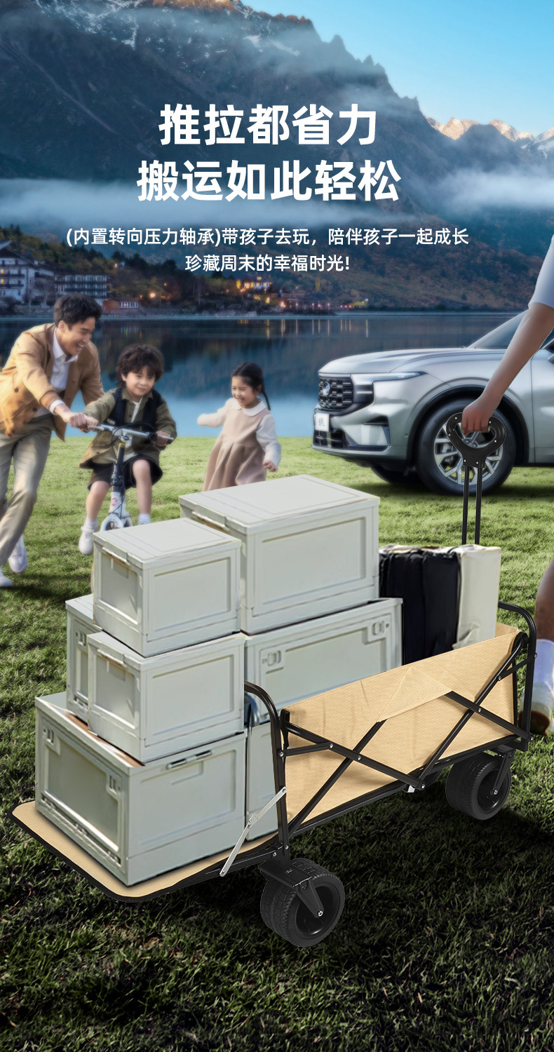 露營車折疊聚攏小推車戶外野餐營地買菜小拉車擺攤專用手推車