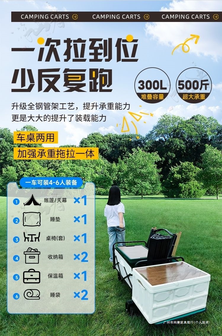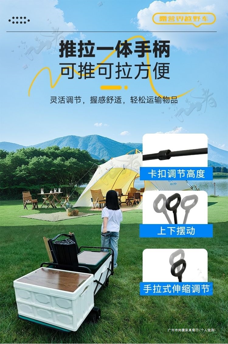 露營推車可折疊戶外手推野餐車可攜式營地拖車拉桿多功能野營擺攤車