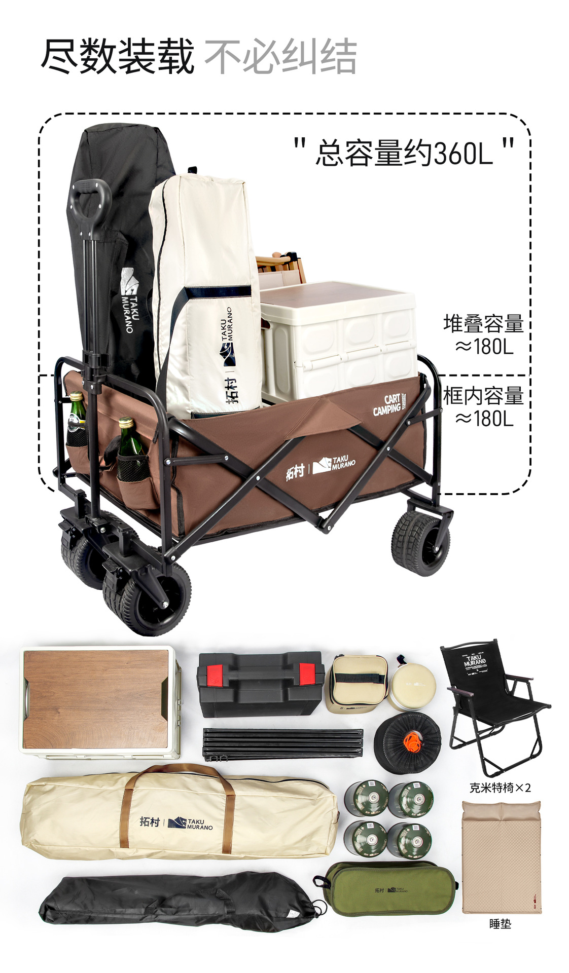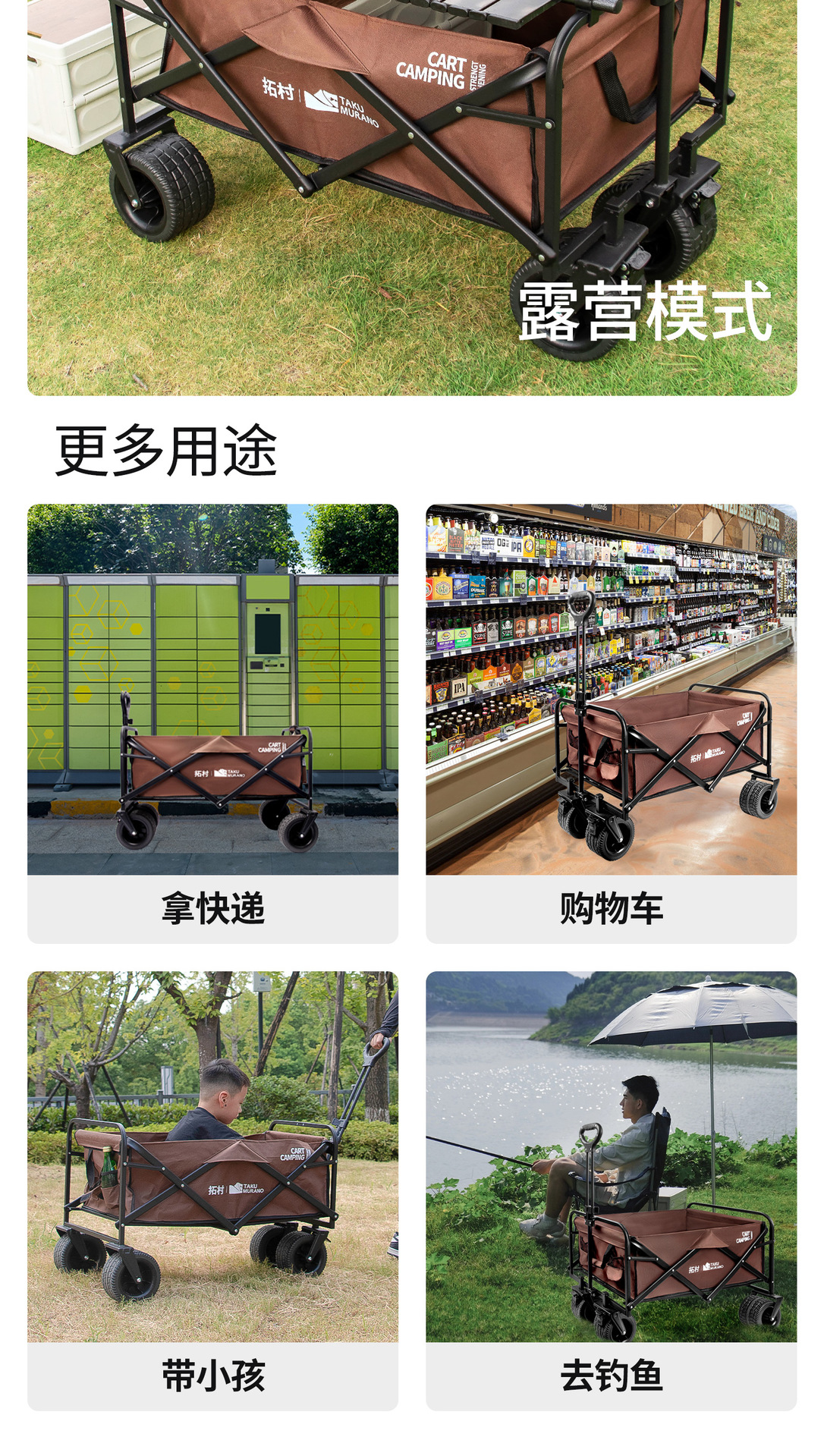 拓村露營推車戶外可折疊推車營地車野餐車拖車野營手拉擺攤小推車