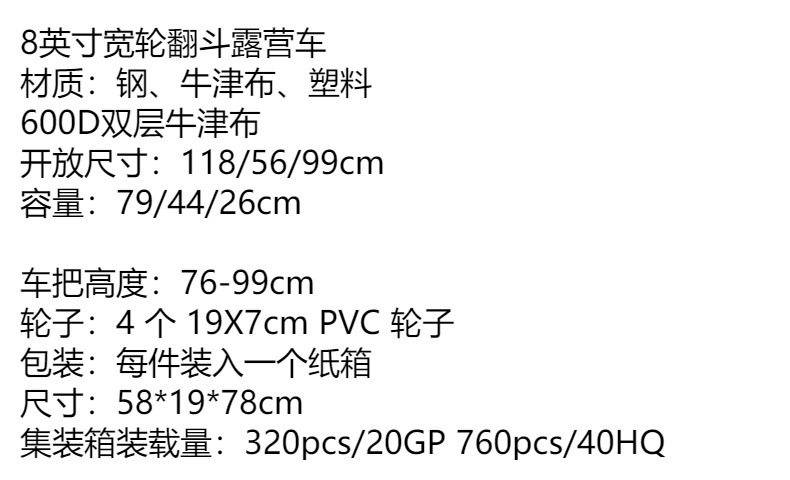 繙蓋擺攤拖車繙鬥露營小推車戶外可折疊營地車野餐擴容擺攤小推車