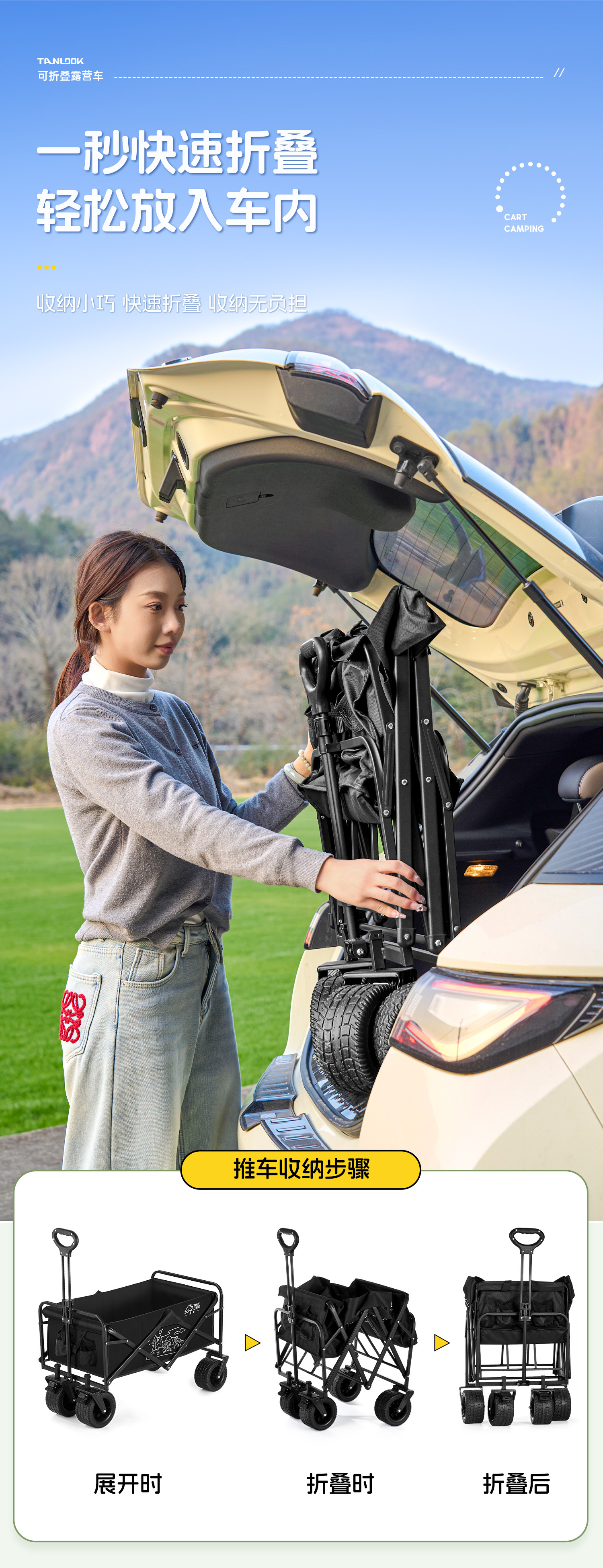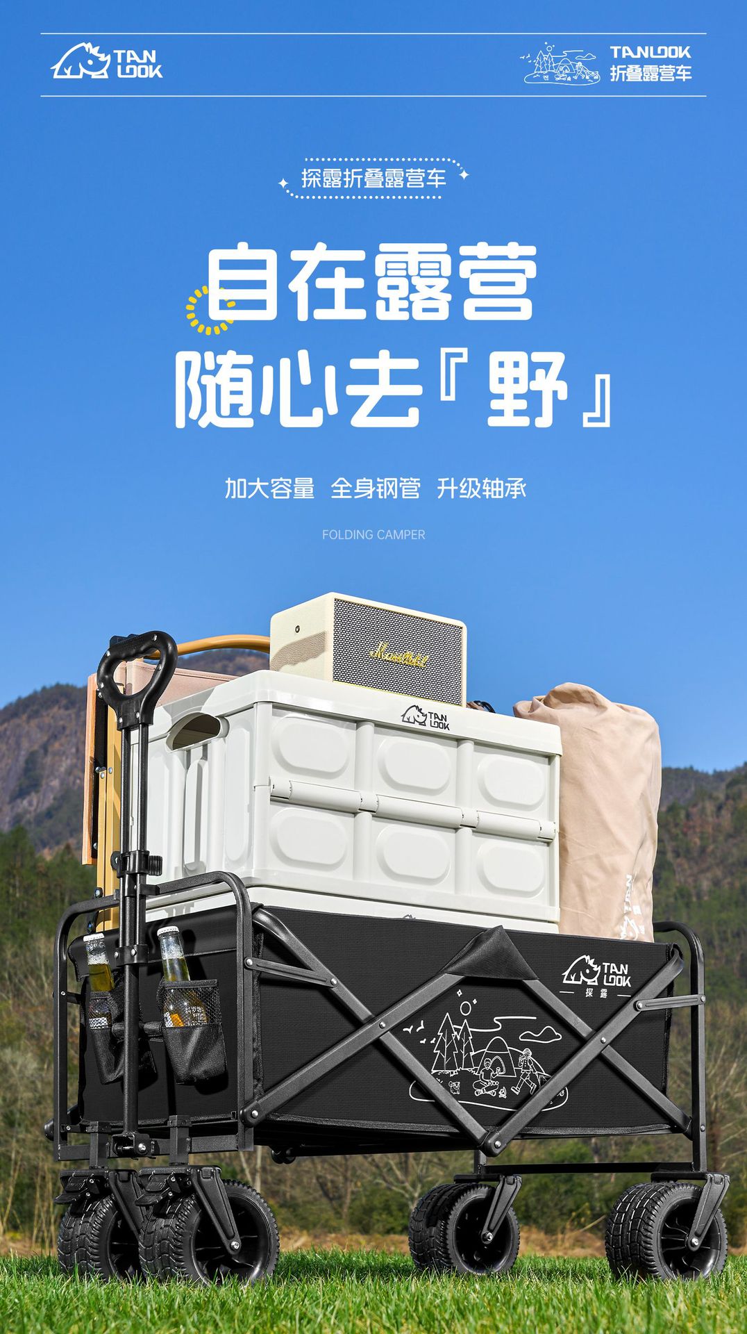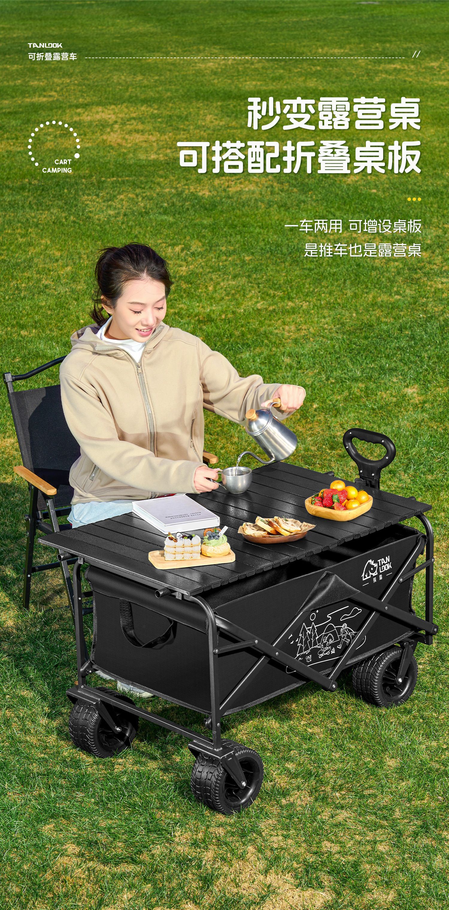 戶外折疊手推車露營車野營車加寬加大桌板野餐推拉營地車