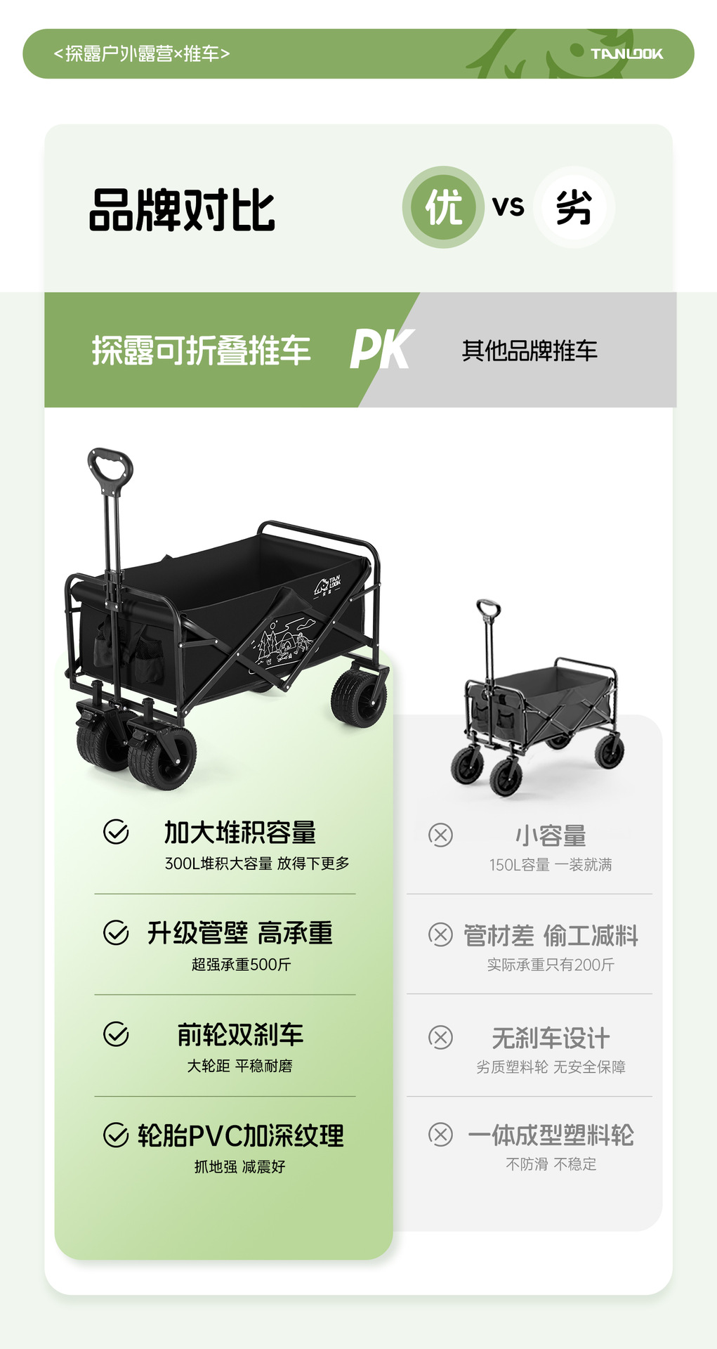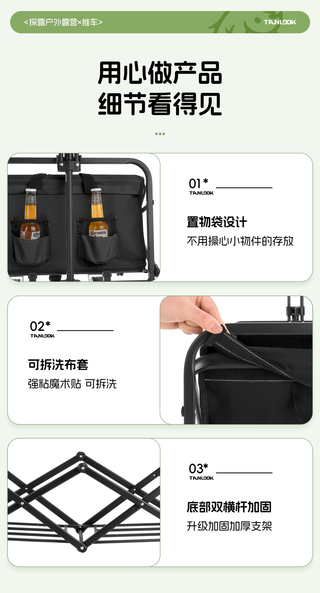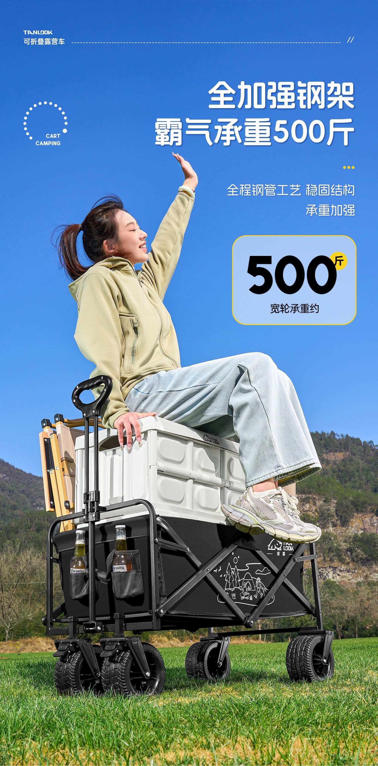 戶外折疊手推車露營車野營車加寬加大桌板野餐推拉營地車