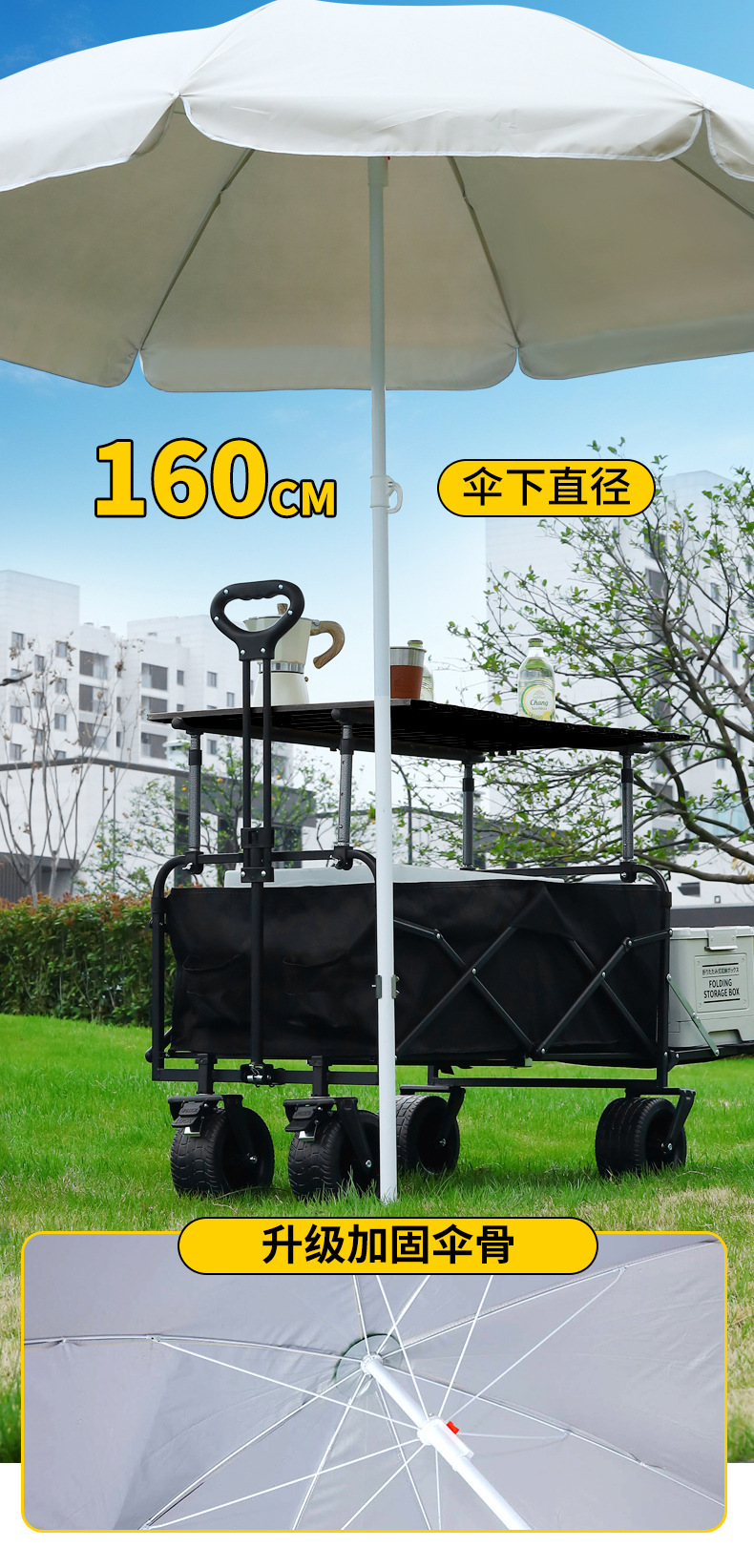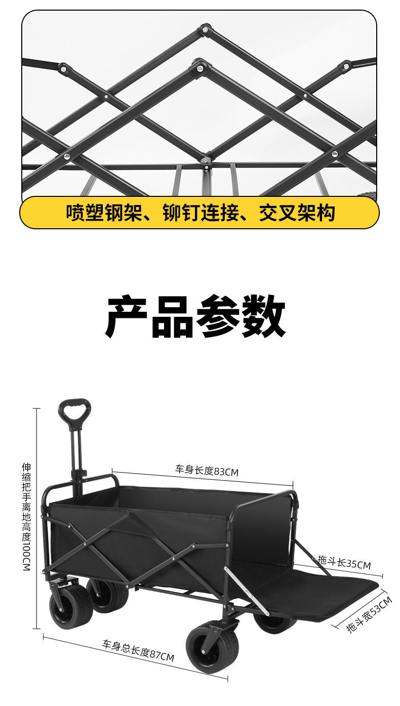 可折疊後開野營車擺地攤小推車帶遮陽傘野餐車移動手推戶外露營車