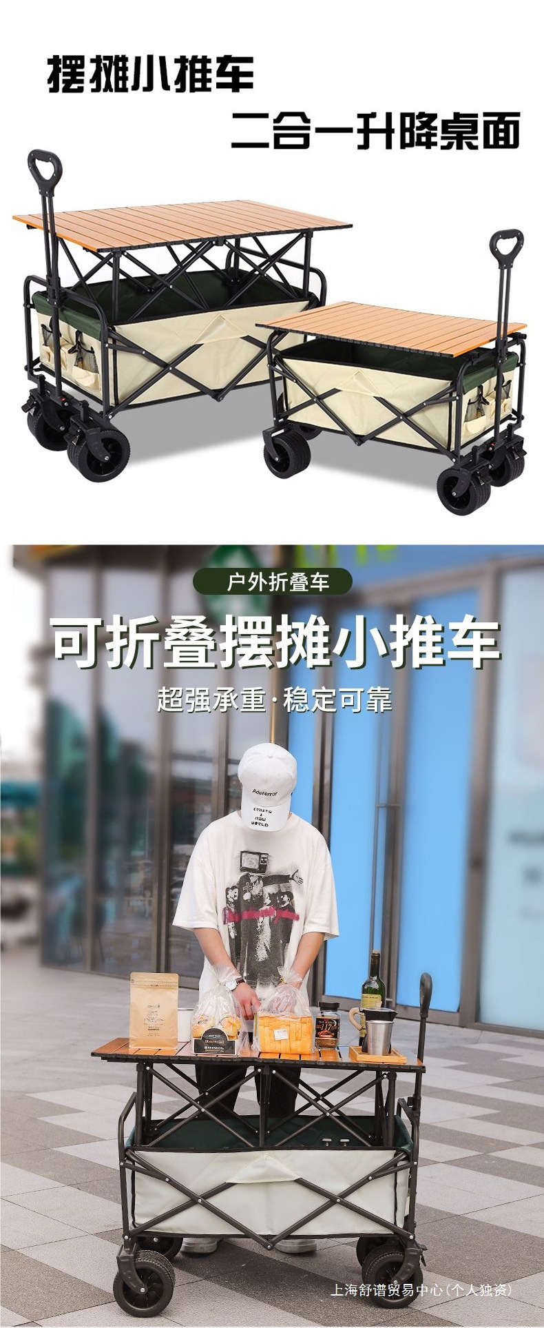 | 顔色 | 營地車+加高加長擺攤桌子-大號窄輪(米綠) |