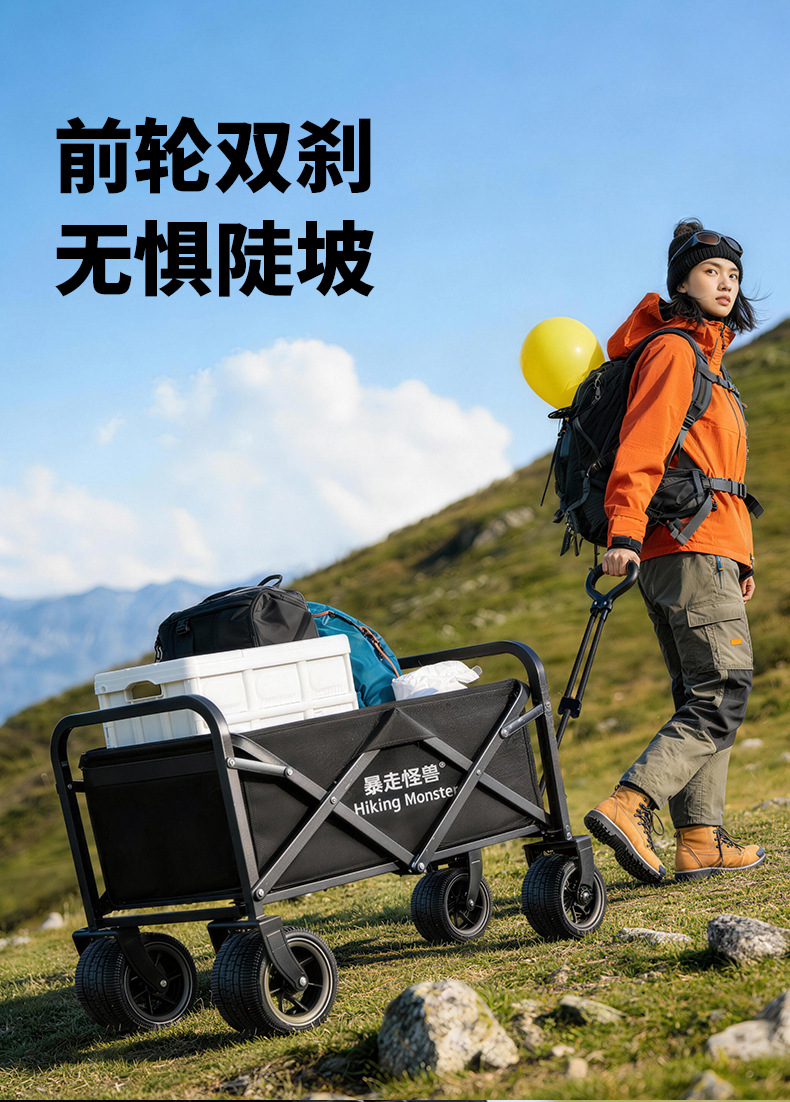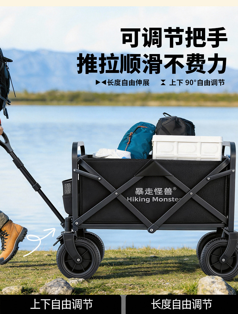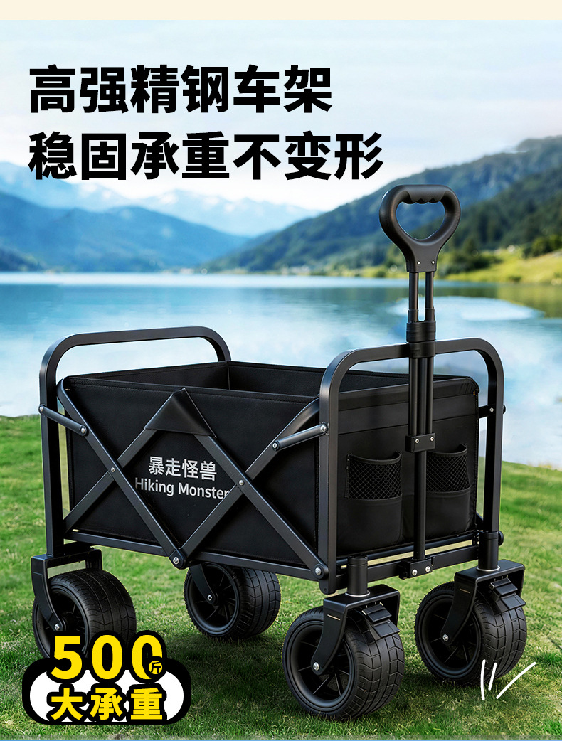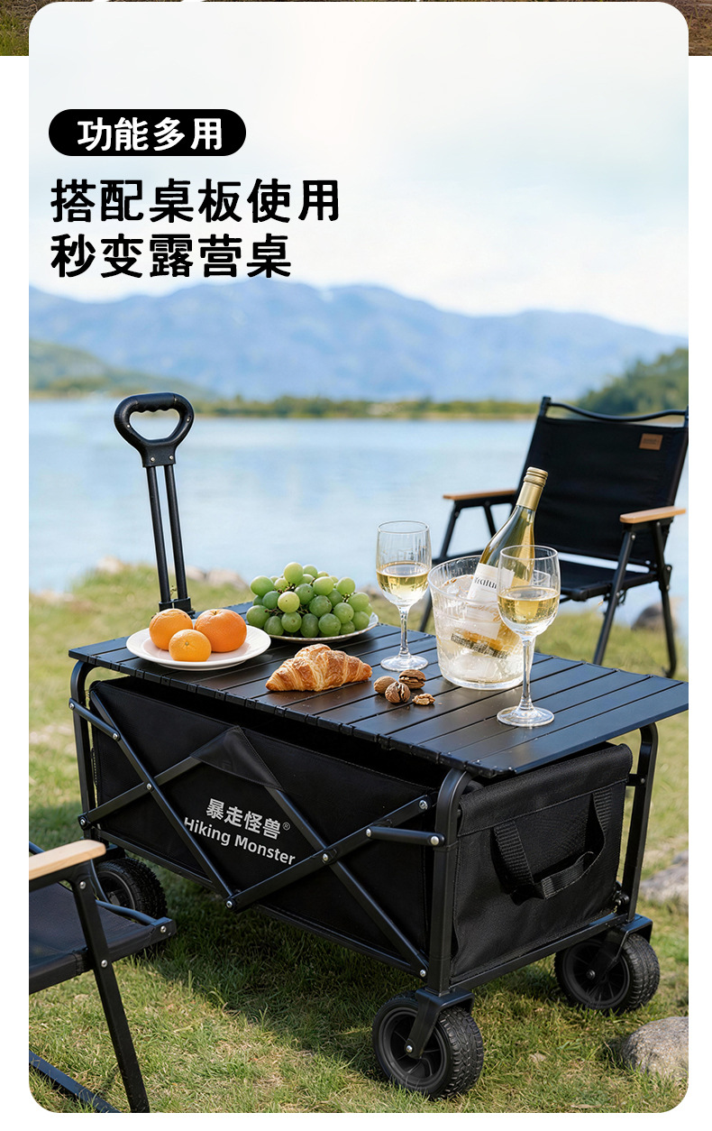 暴走怪獸戶外露營推車 戶外手推可攜式營地拖車拉桿坦克輪野營車