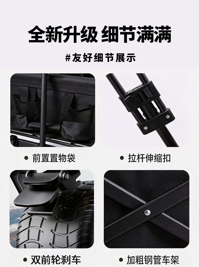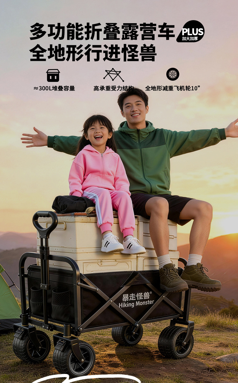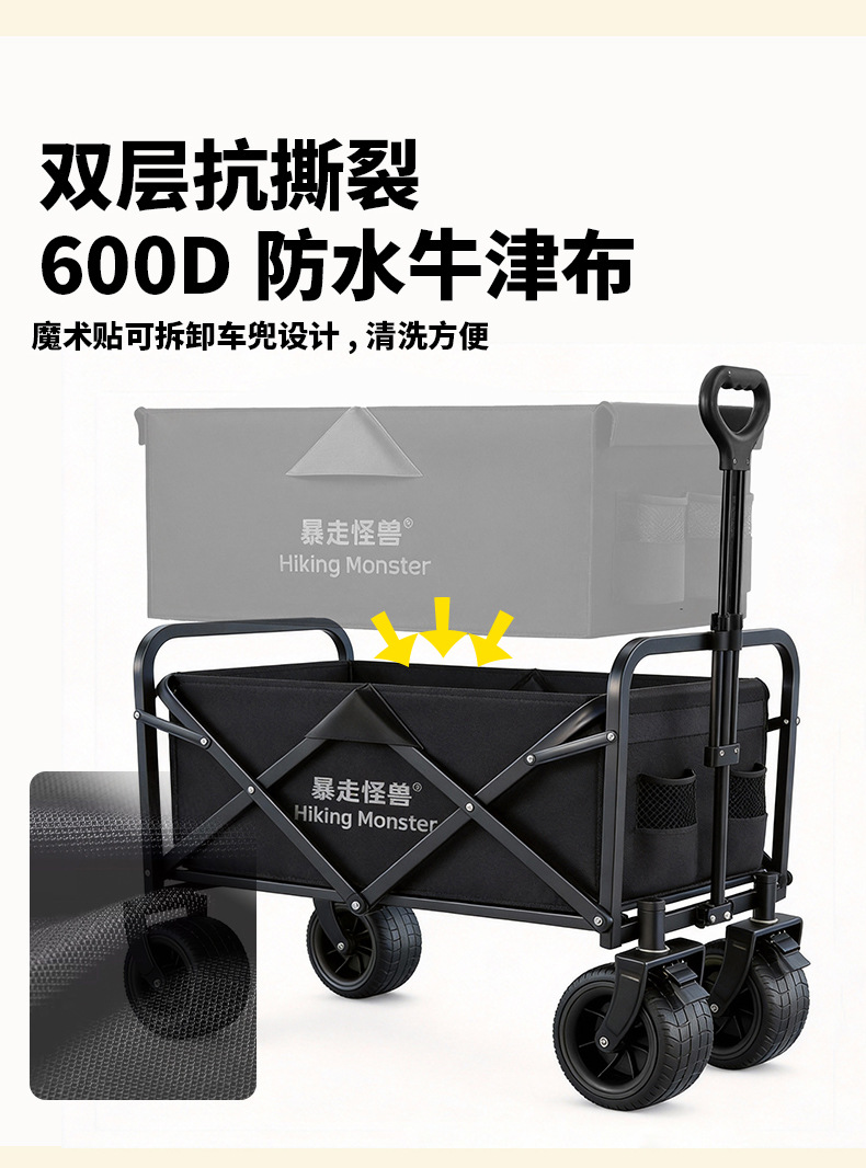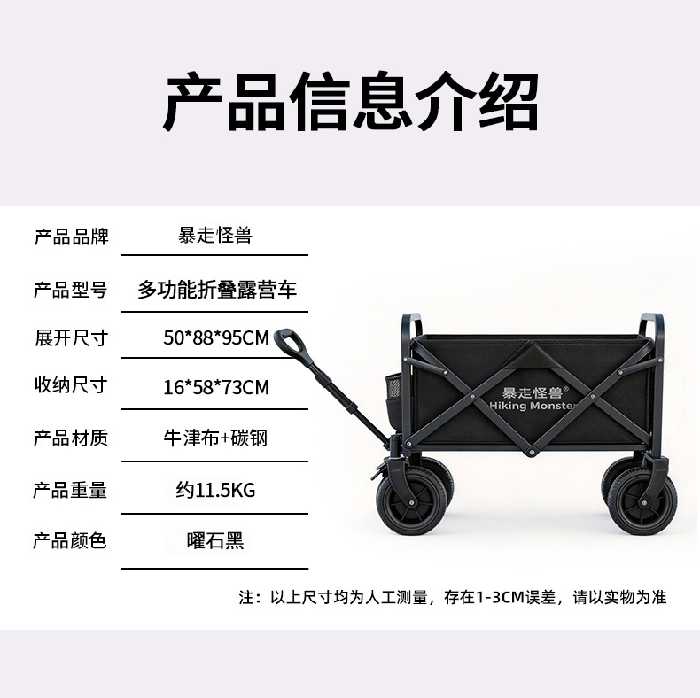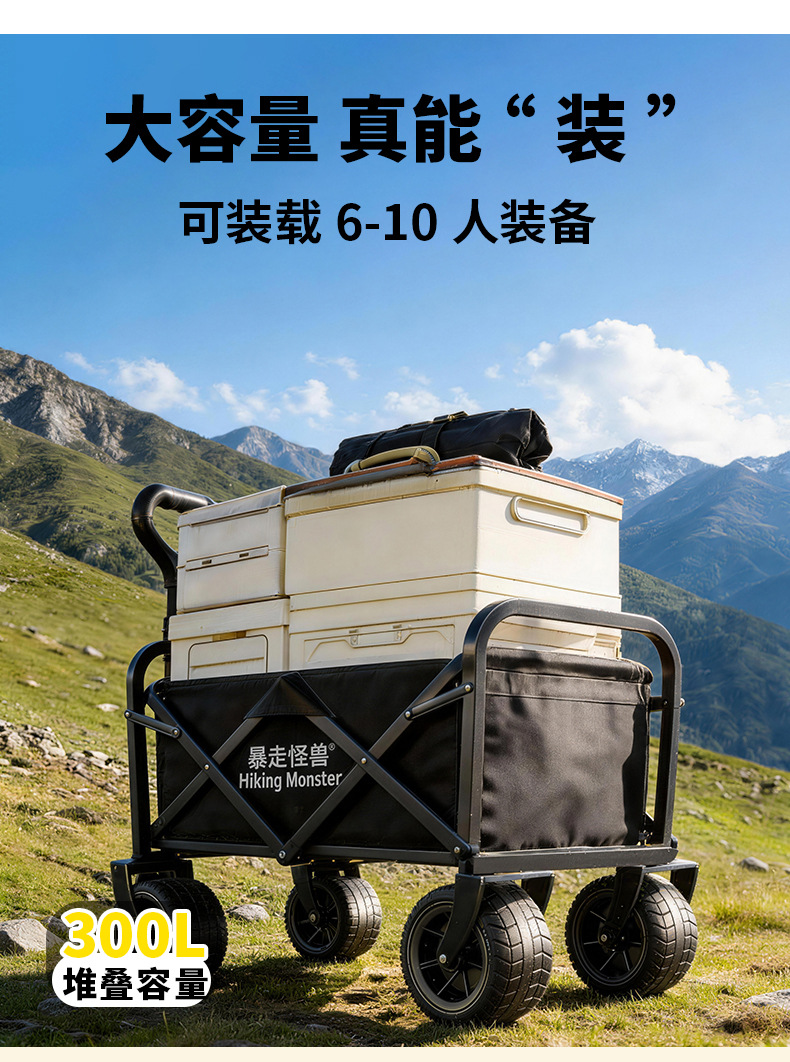 暴走怪獸戶外露營推車 戶外手推可攜式營地拖車拉桿坦克輪野營車