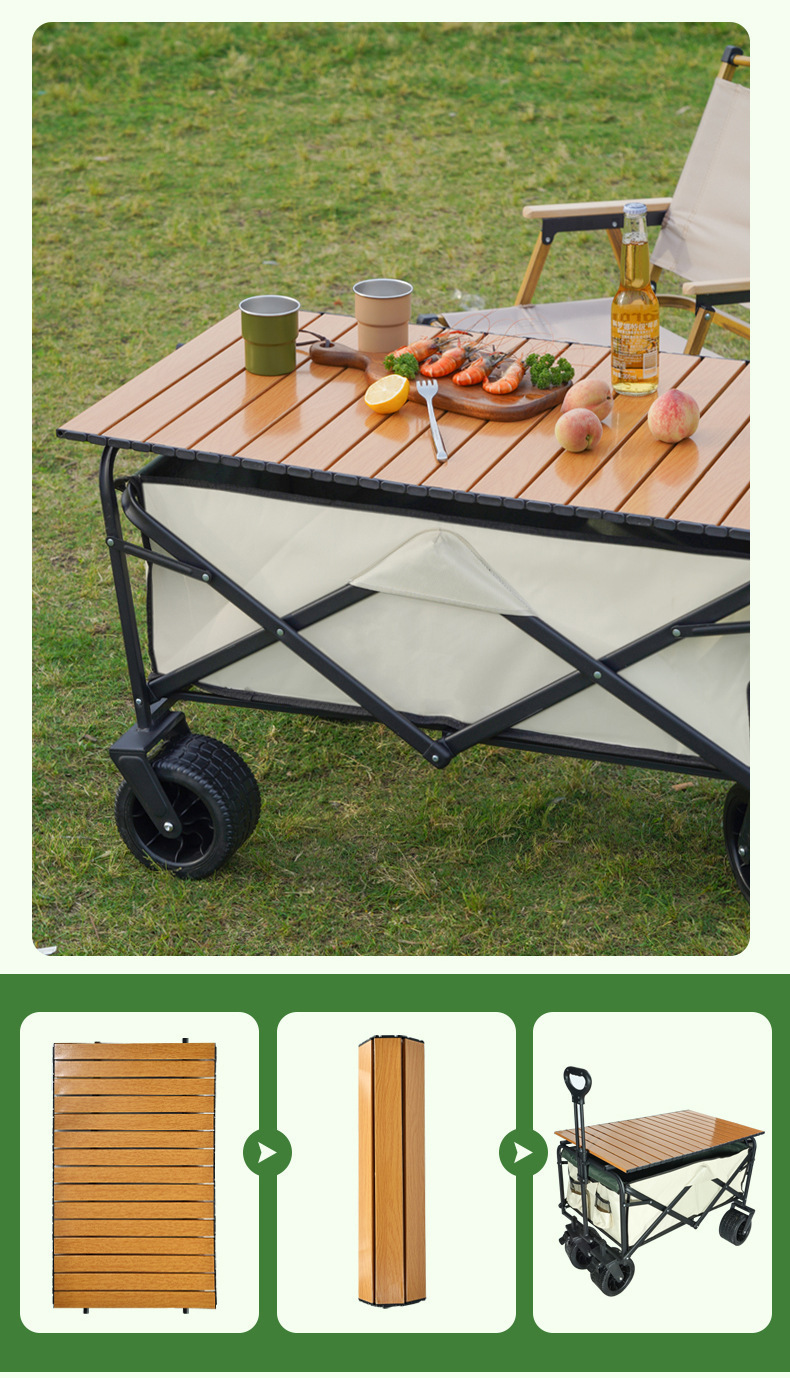 戶外擺攤推車露營折疊帶桌板野餐小拉車拖車大容量手推營地車