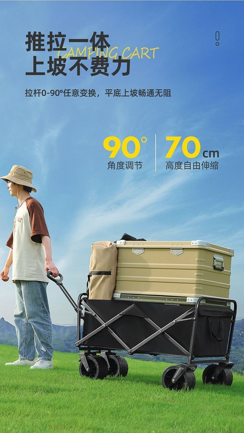露營小推車可折疊戶外手推車野餐車可攜式營地拖車拉桿野營車擺攤車