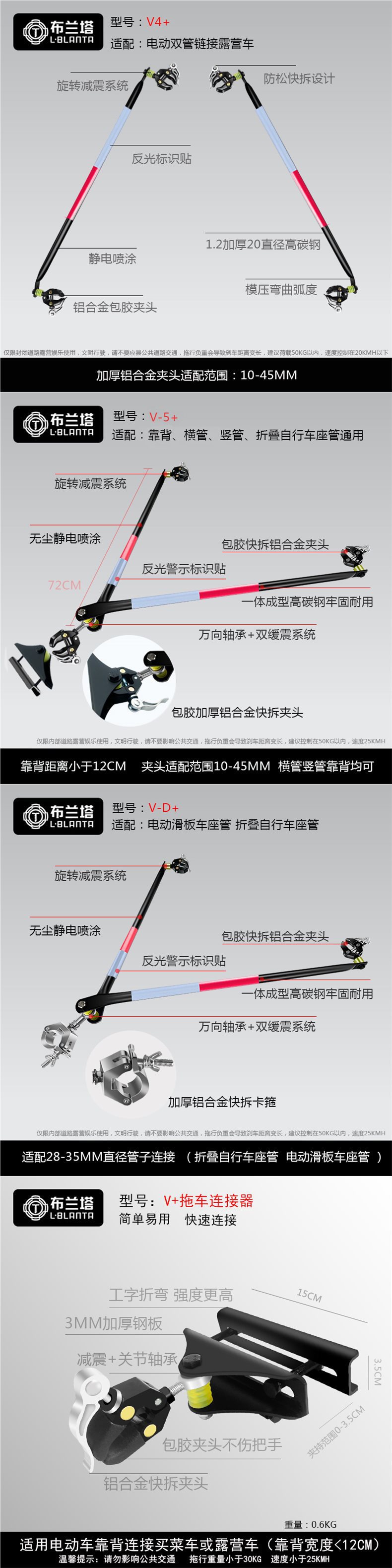 布蘭塔電動車連接器露營車連接件營地車後掛式牽引拖車連接桿配件