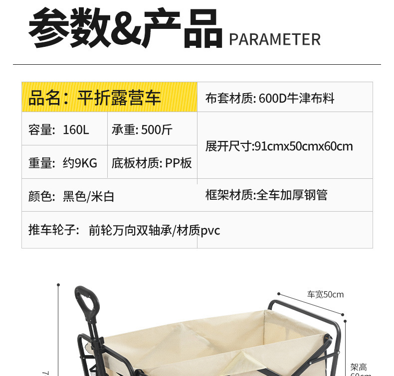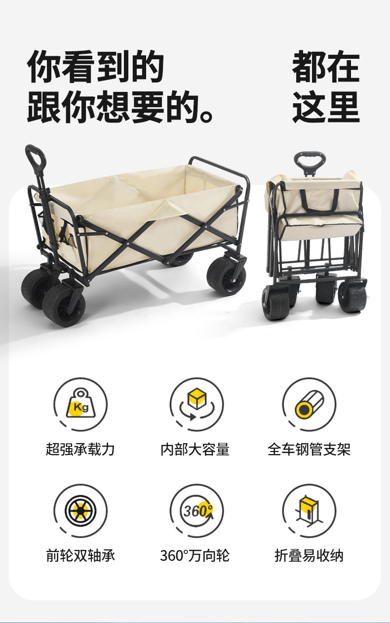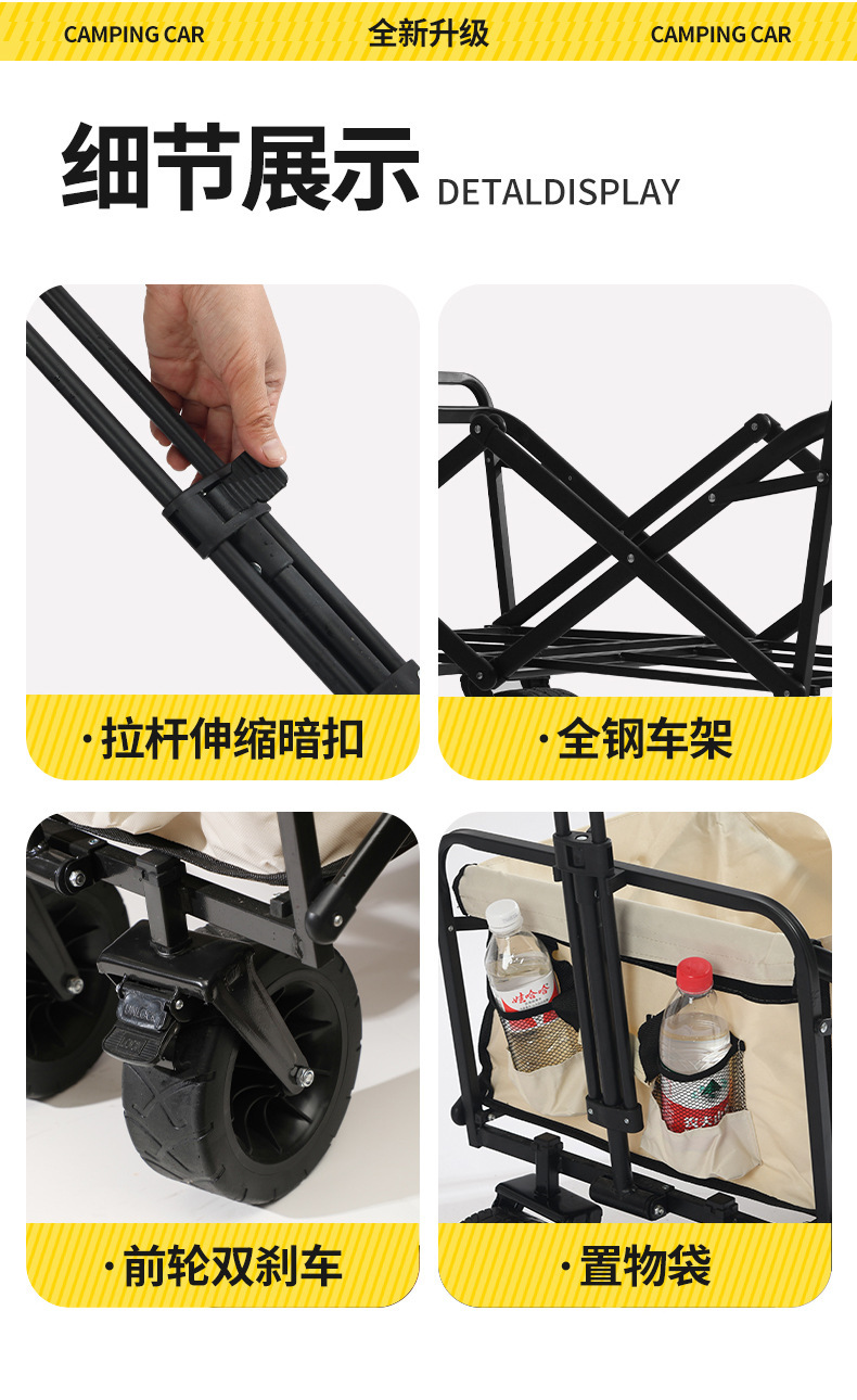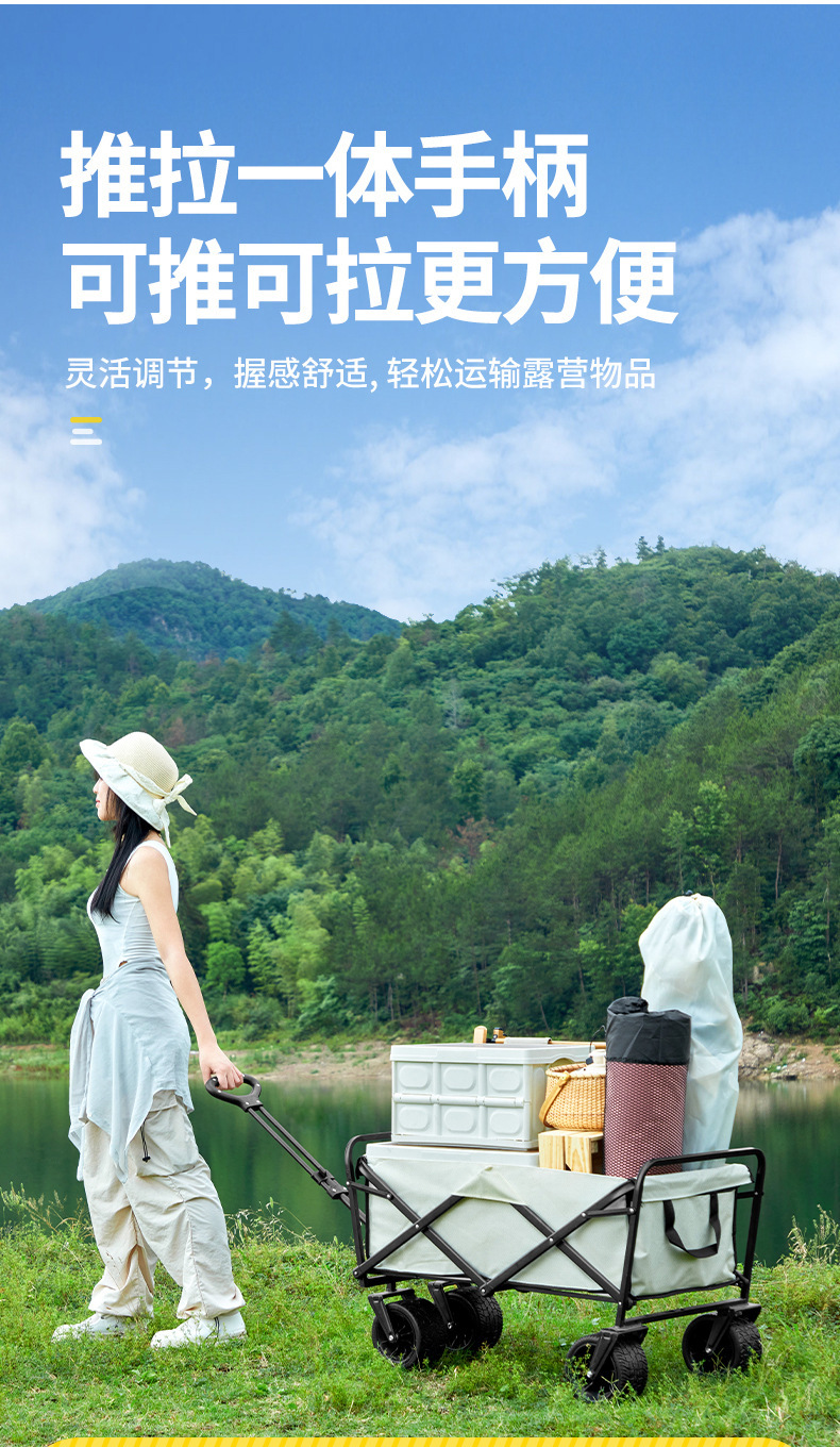 露營車戶外可折疊野餐手推車兒童可躺野營拖車擺攤旅行營地推車