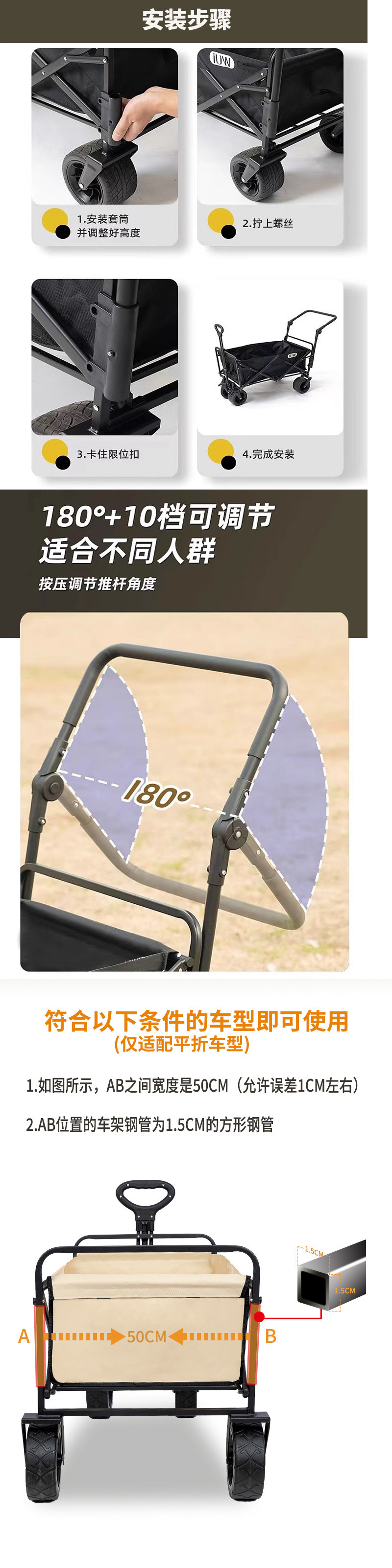 配件營地車可拆卸推桿露營車折疊車四輪戶外推桿拖車拉貨車可調節