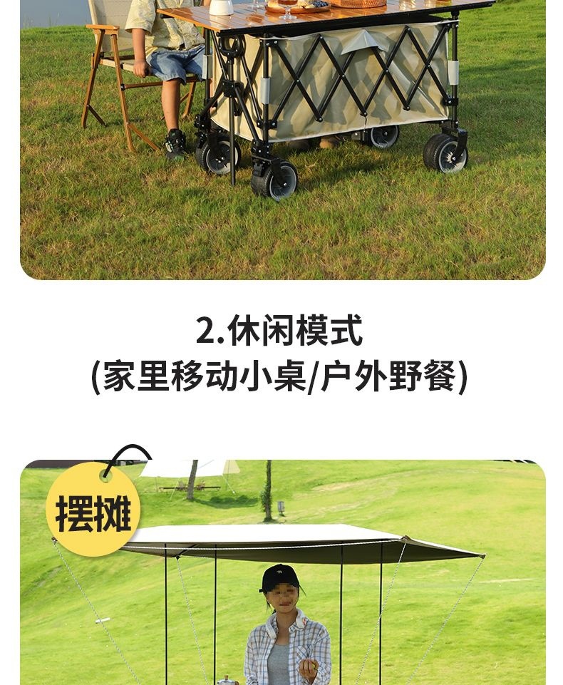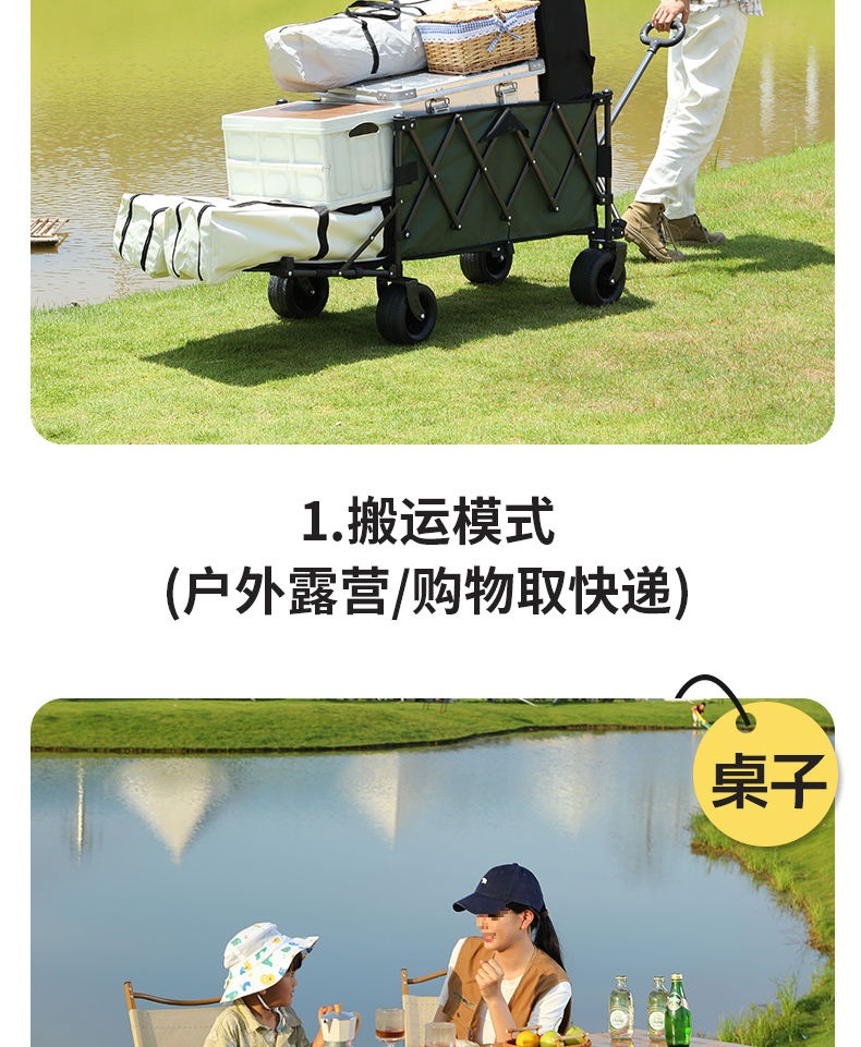 拖鬥聚攏款露營車可折疊升降桌營地車擺攤小推車戶外手拉車野餐車
