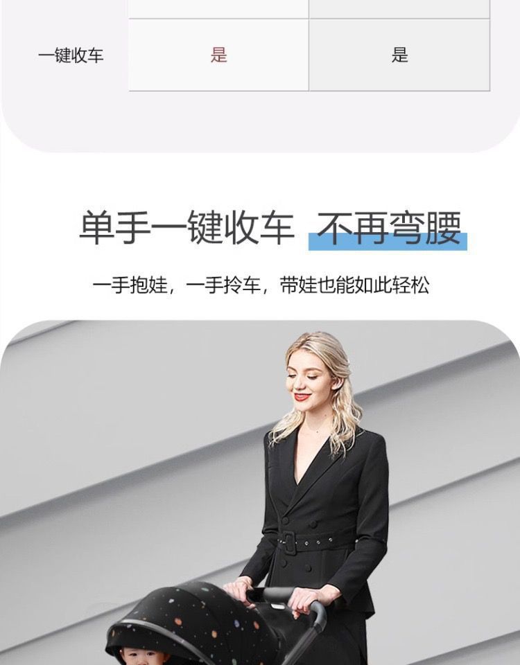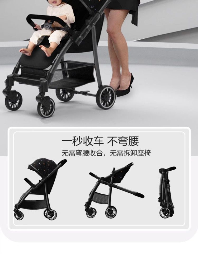 嬰兒手推車可躺可坐兒童推車外出四輪減震雙向一鍵折疊