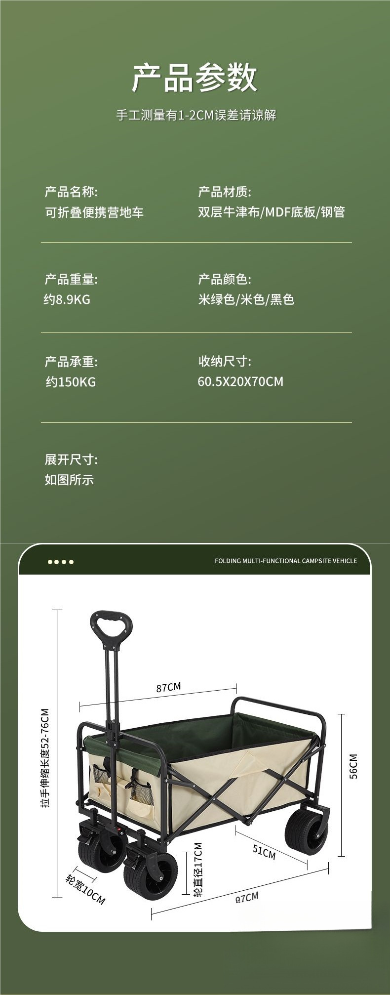 | 顔色 | 營地車+加高加長擺攤桌子-大號窄輪(米綠) |