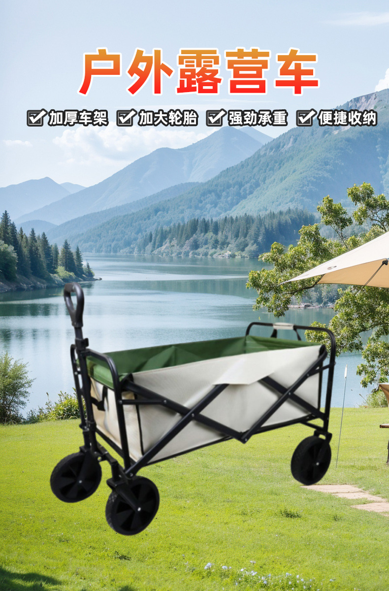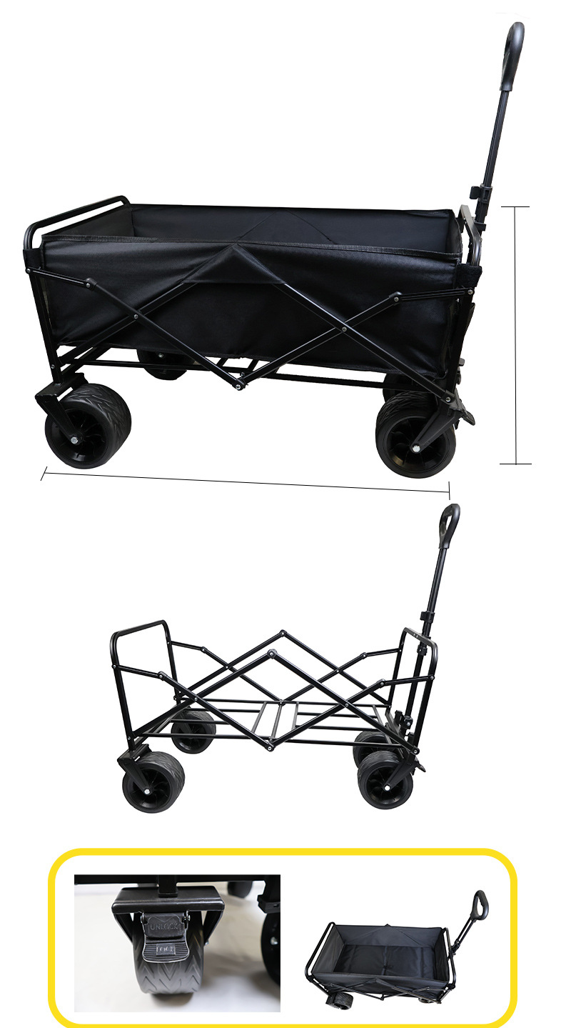 戶外營地折疊拉桿車露營野餐車購物小推車加長家用買菜四輪手推車