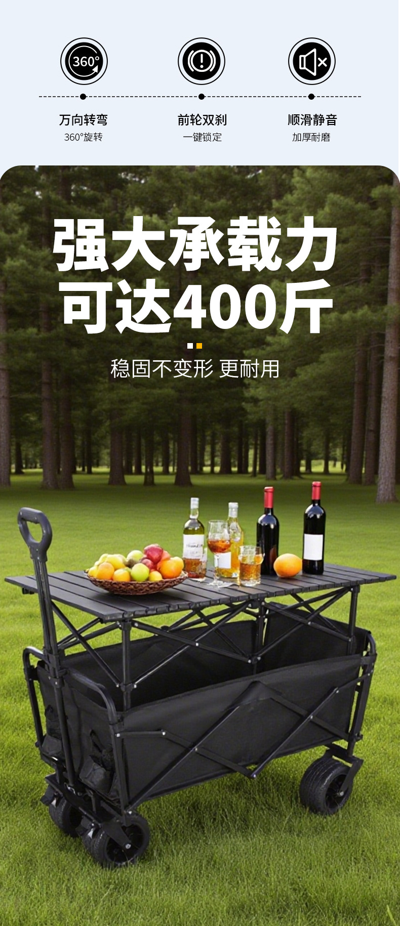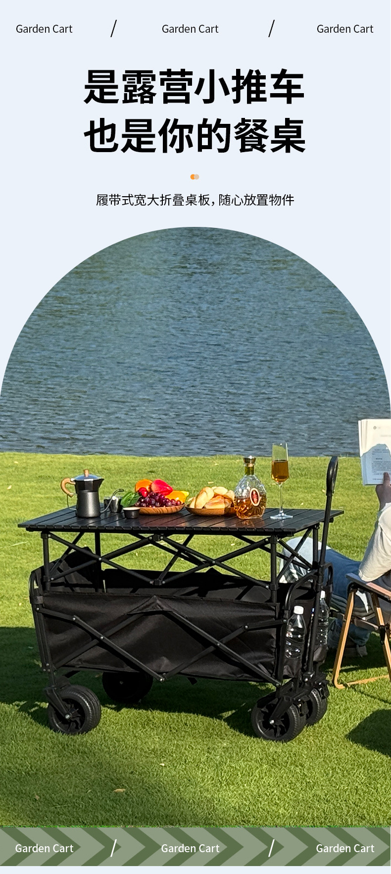 露營推車可折疊戶外手推野餐車可攜式營地拖車拉桿多功能野營擺攤車