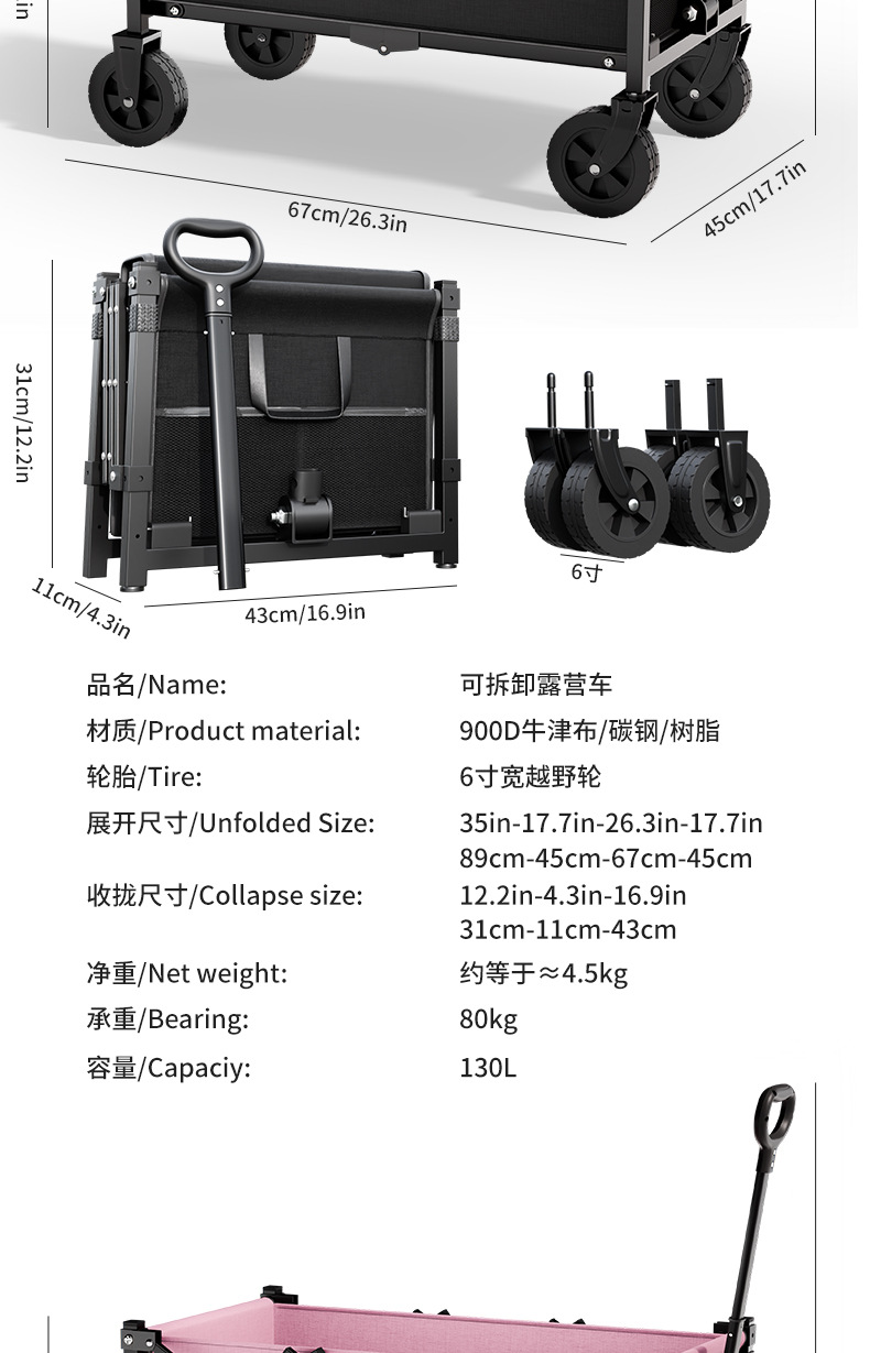 戶外露營車野營地車可攜式野餐拉桿小拉車露營擺攤折疊小推車