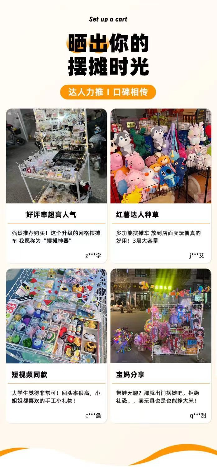 加粗方琯擺攤小推車可折疊冰粉甜品花車貨架壽司夜市移動出攤