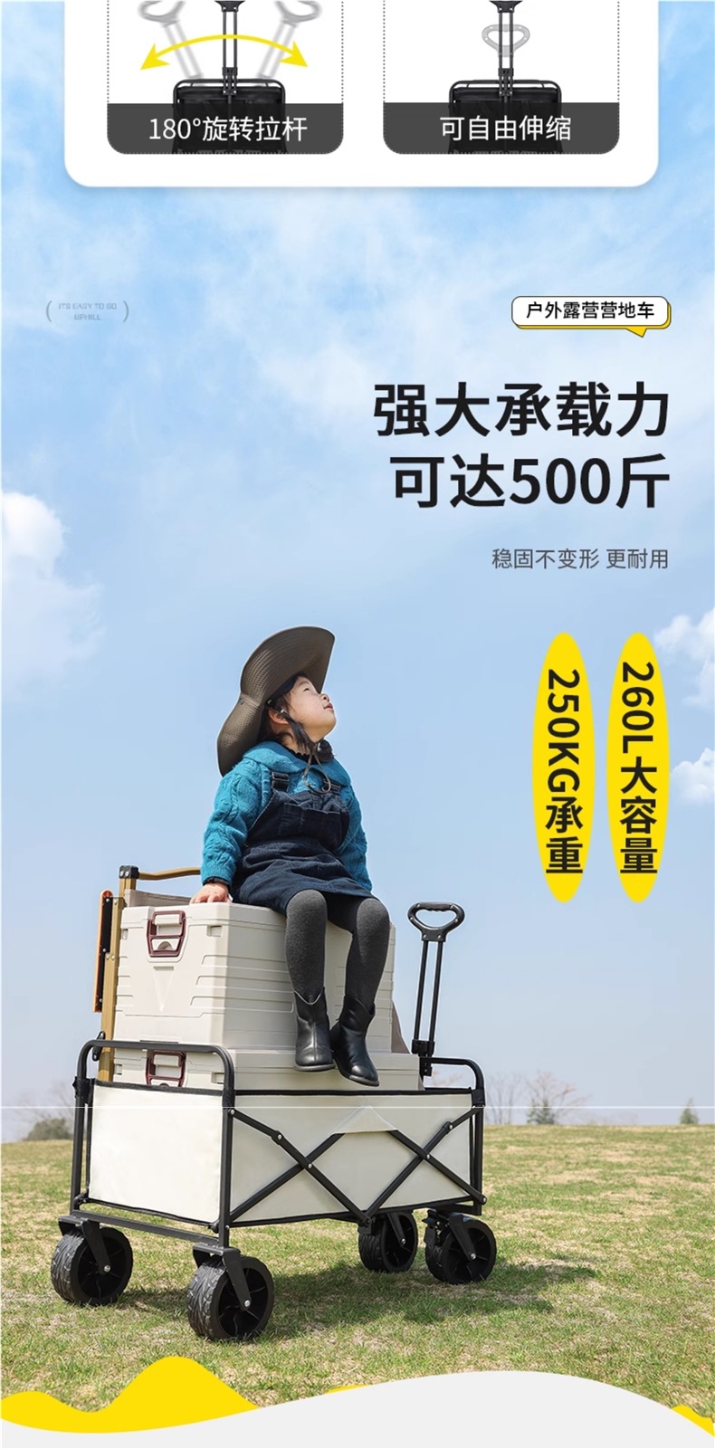 粉色露營車擺攤小推車可折疊可攜式野餐營地車戶外露營擺攤