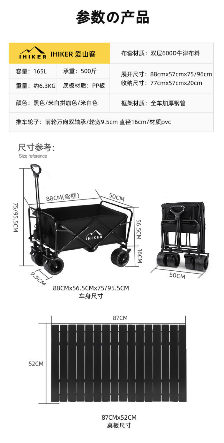 | 顔色 | 出口品質【加粗鋼架/加厚面料】-桌子套裝【米白】10寸坦克款營地車+卡其高桌 |