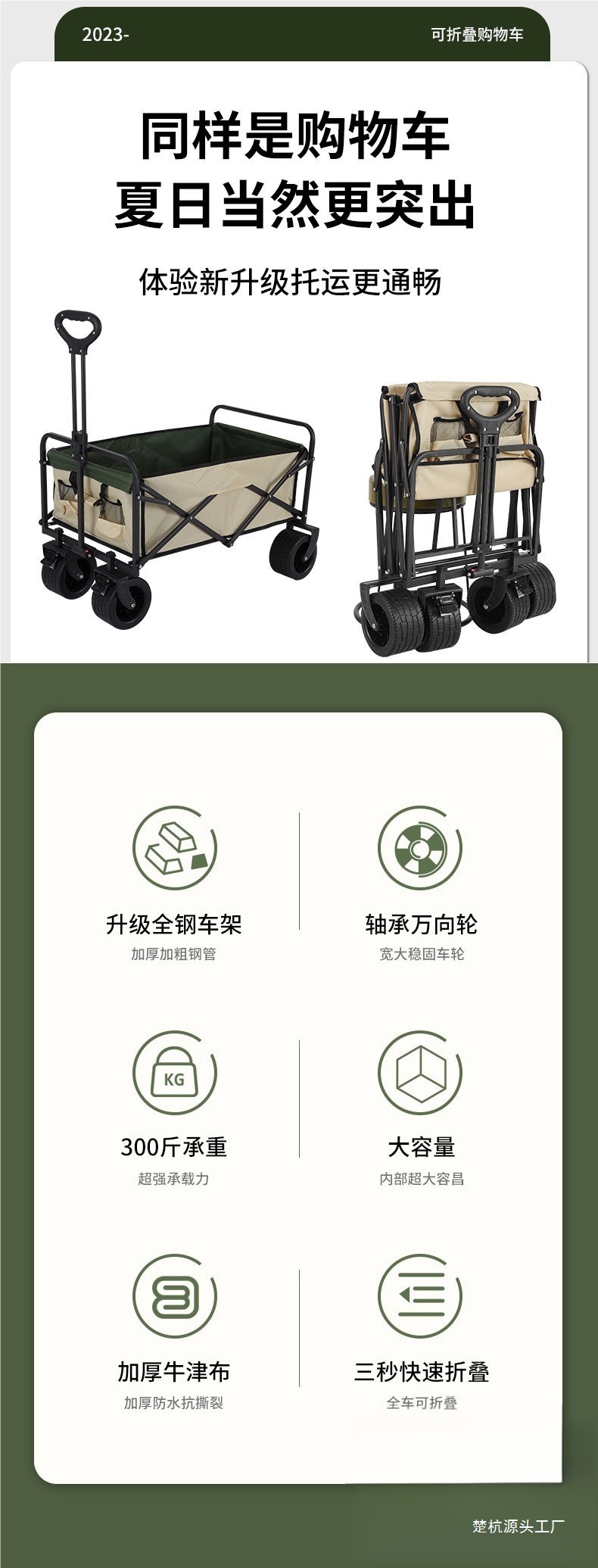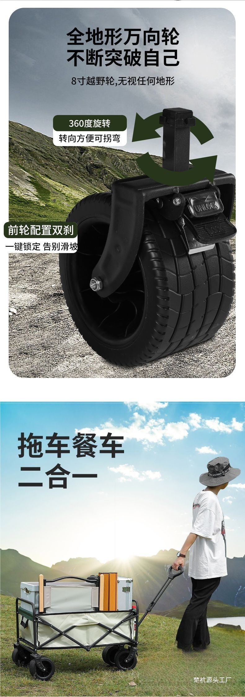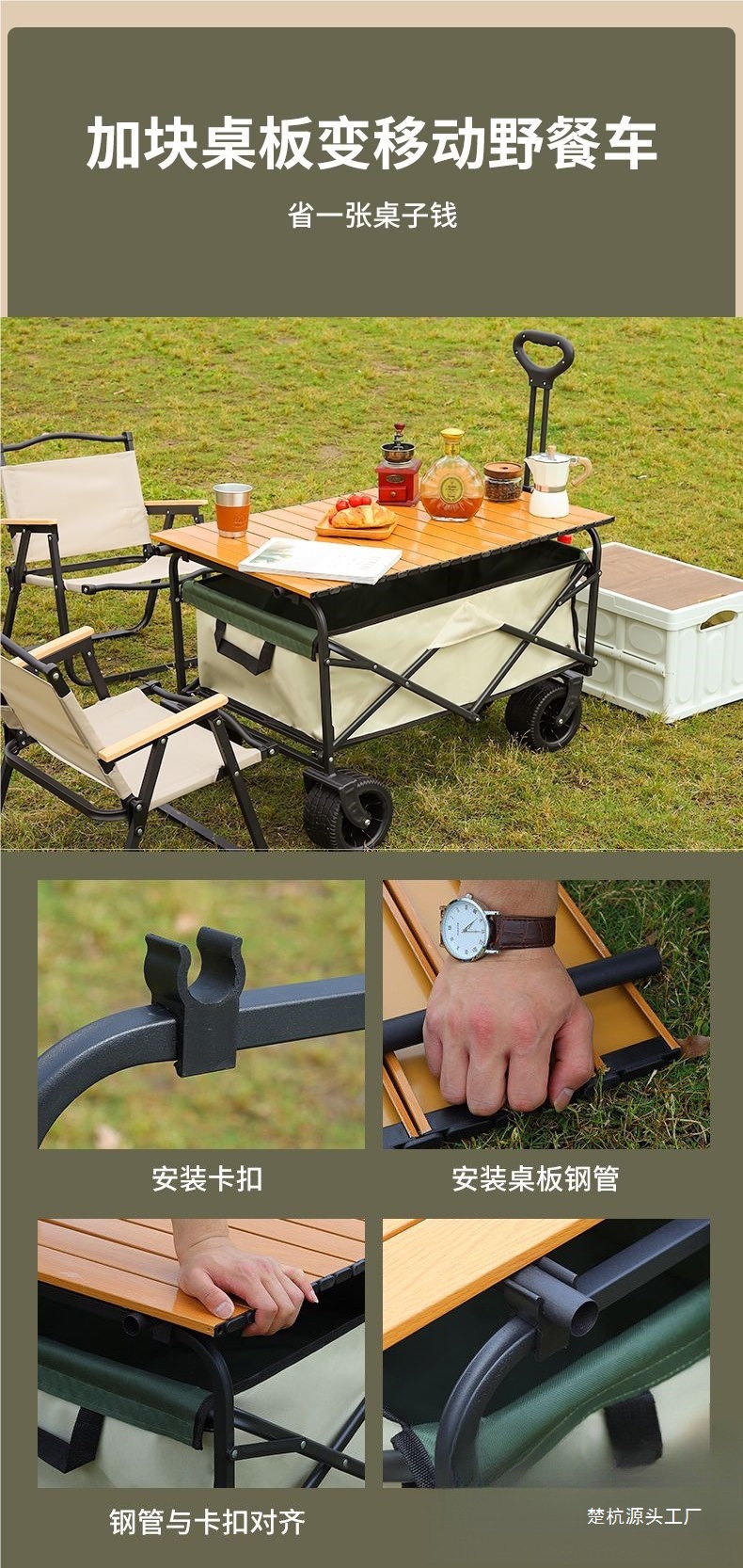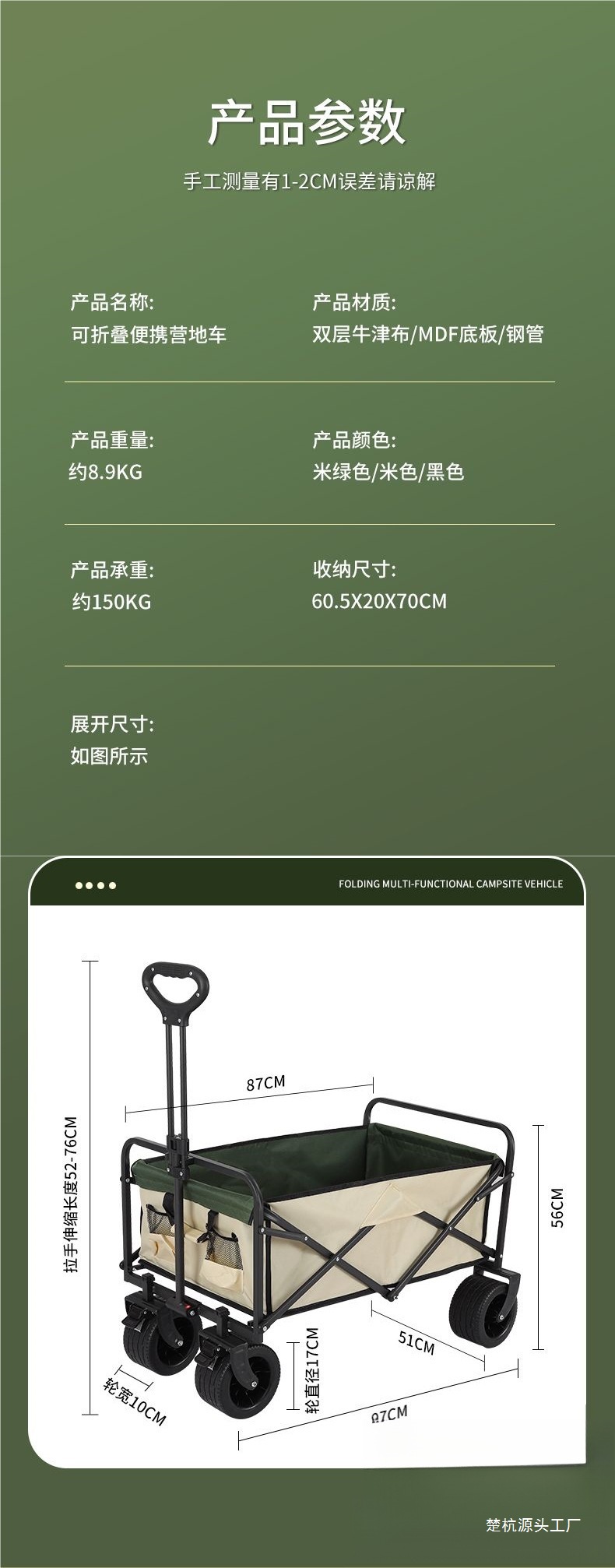 | 顔色 | 營地車+加高加長擺攤桌子-大號窄輪(米綠) |