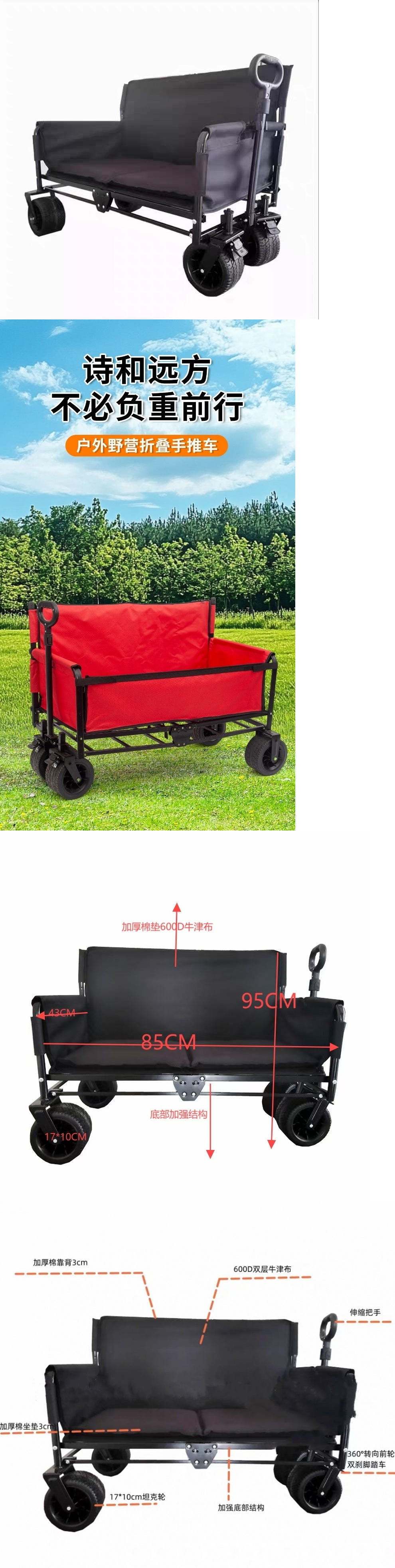 露營四輪野餐車新款可坐營地車擺地攤露營車旅行加桌面釣魚拉車