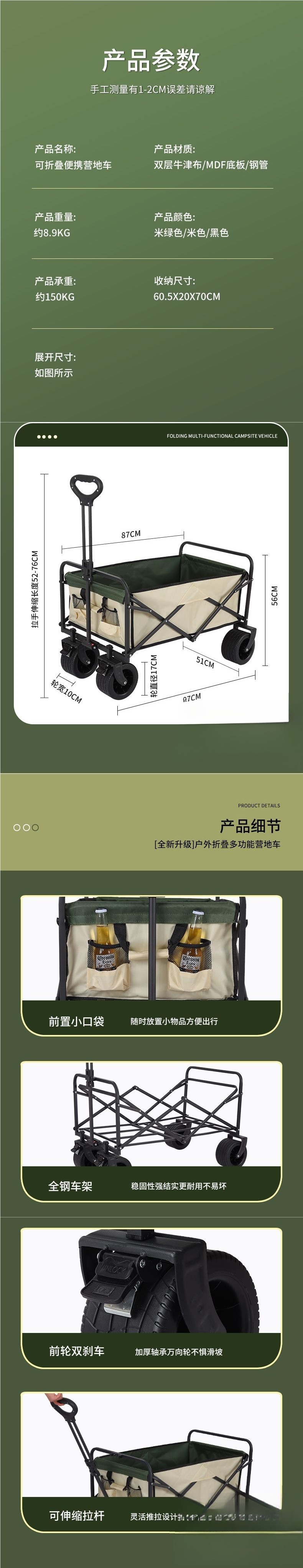| 顔色 | 營地車+加高加長擺攤桌子-大號窄輪(米綠) |