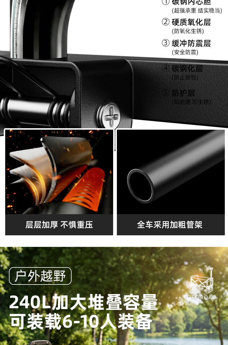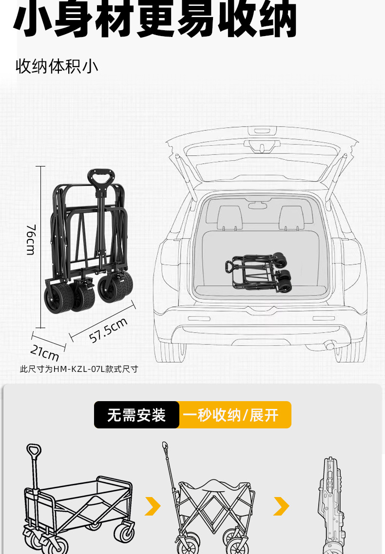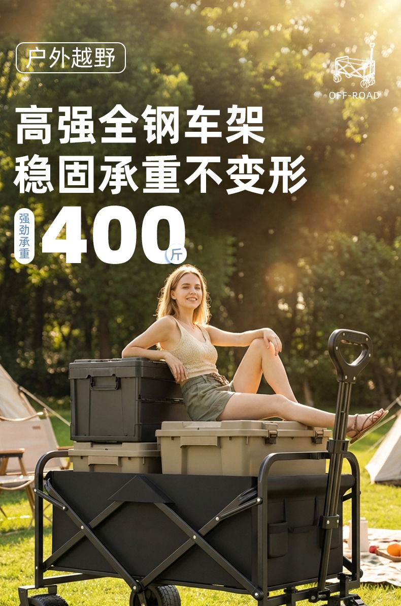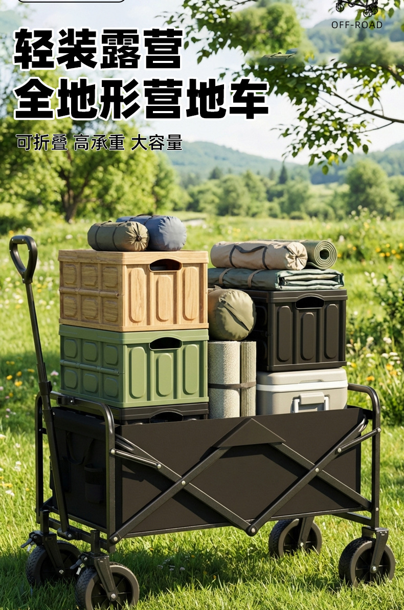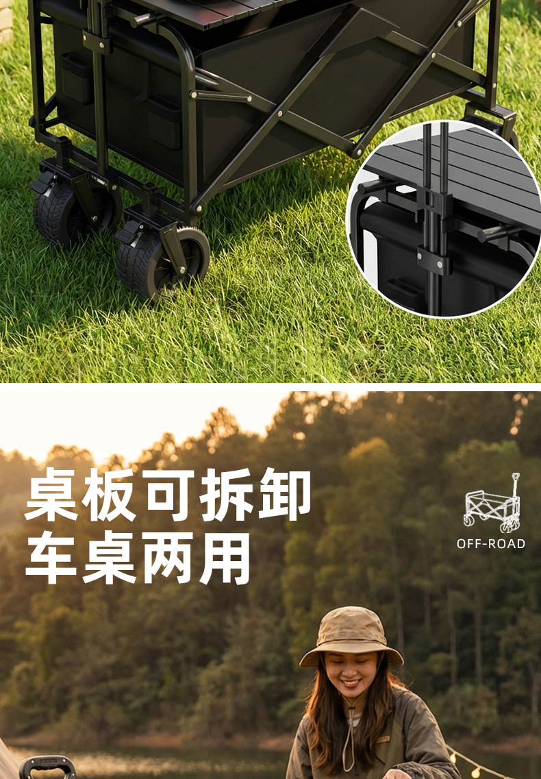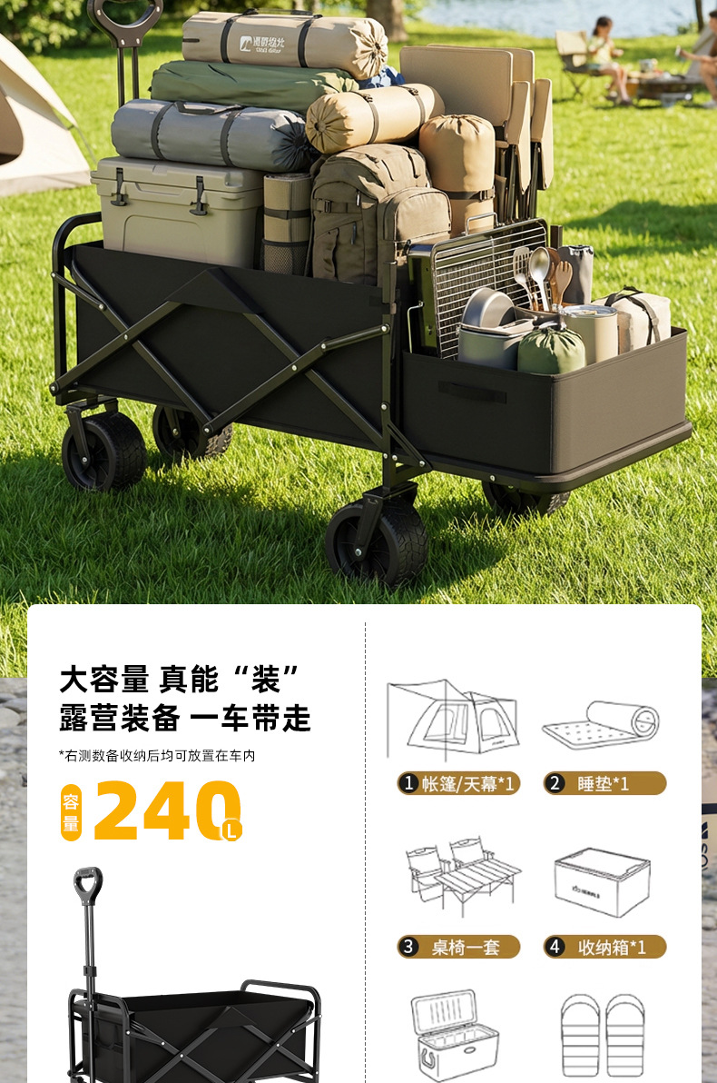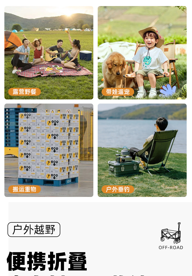 露營推車戶外營地折疊拖車兒童可躺旅行手推車野餐野營手拉車