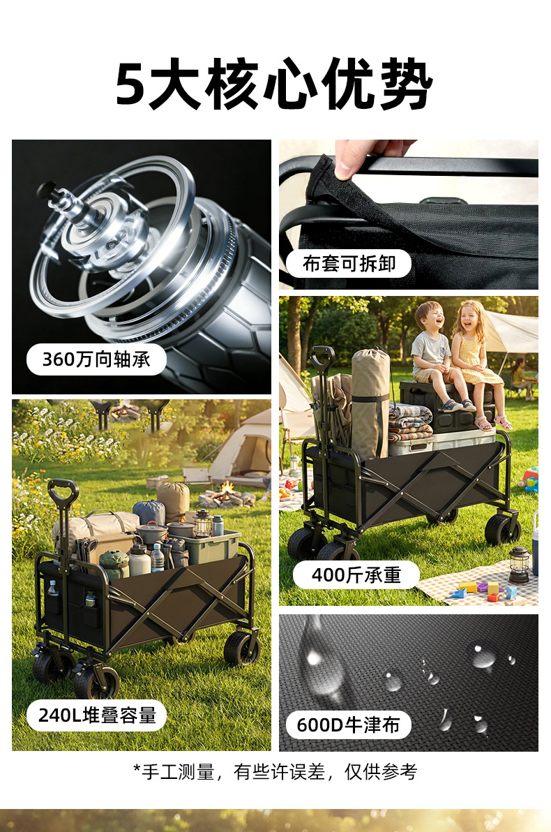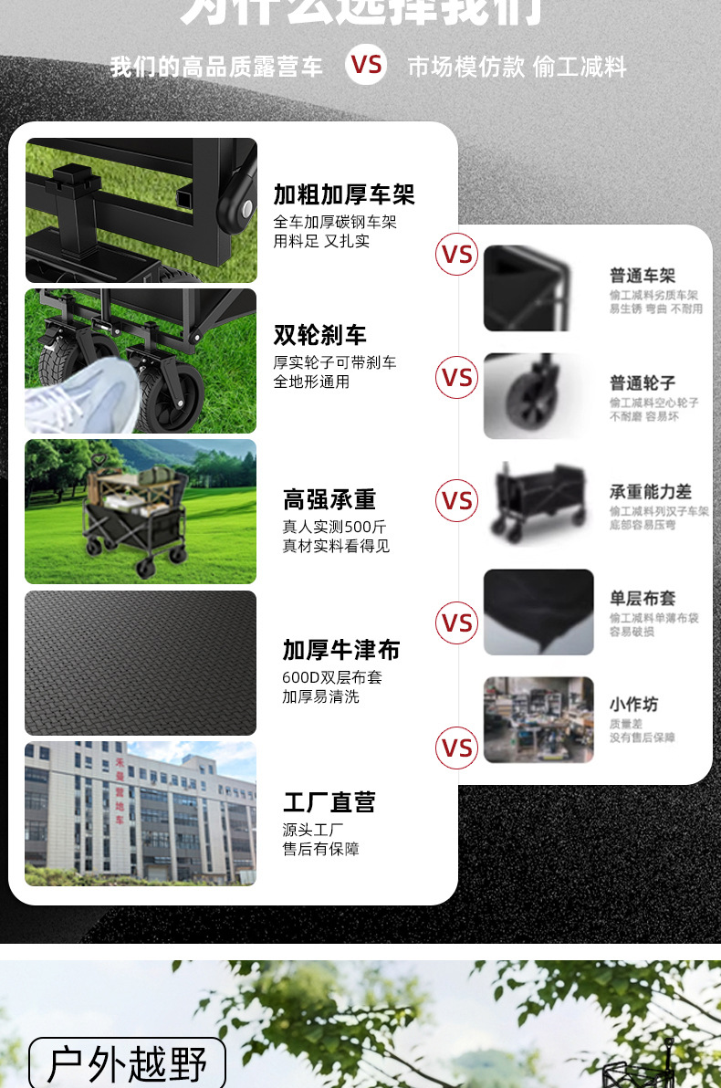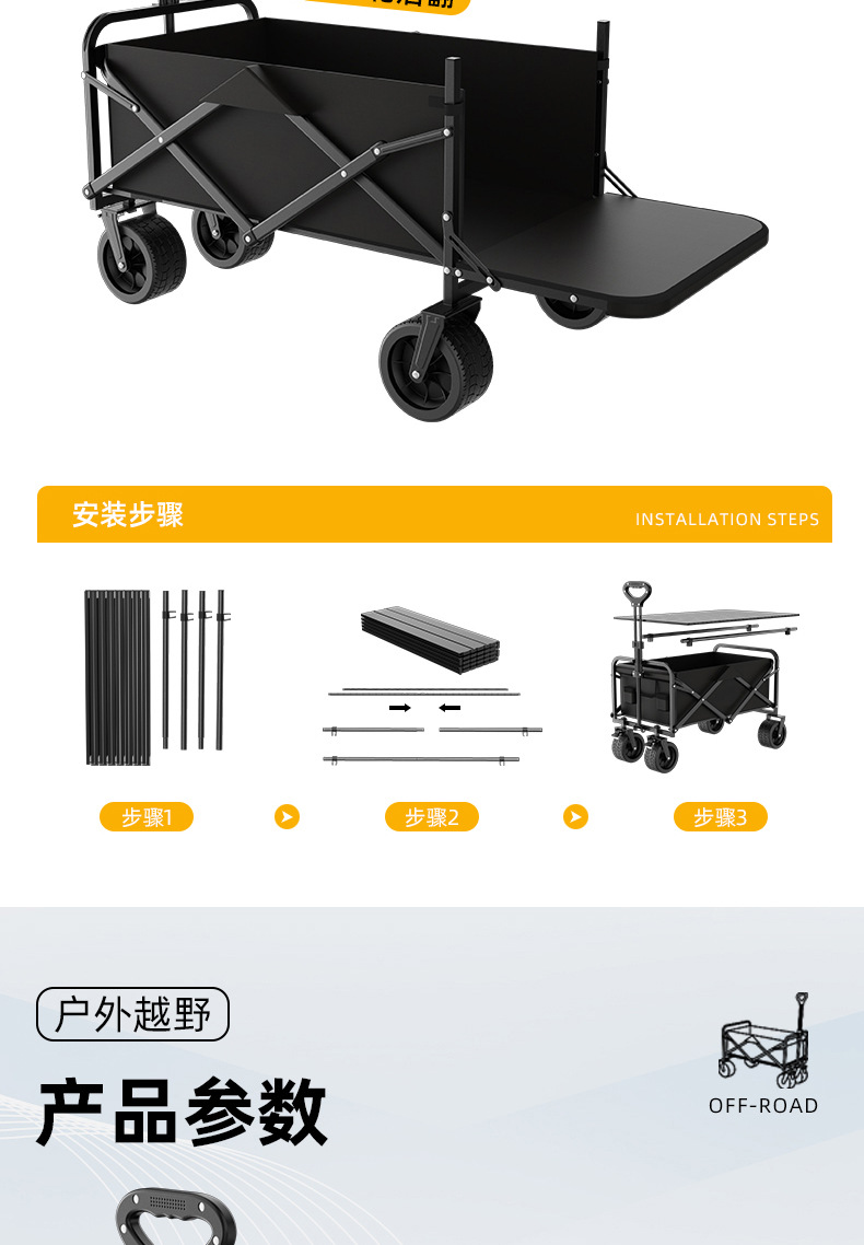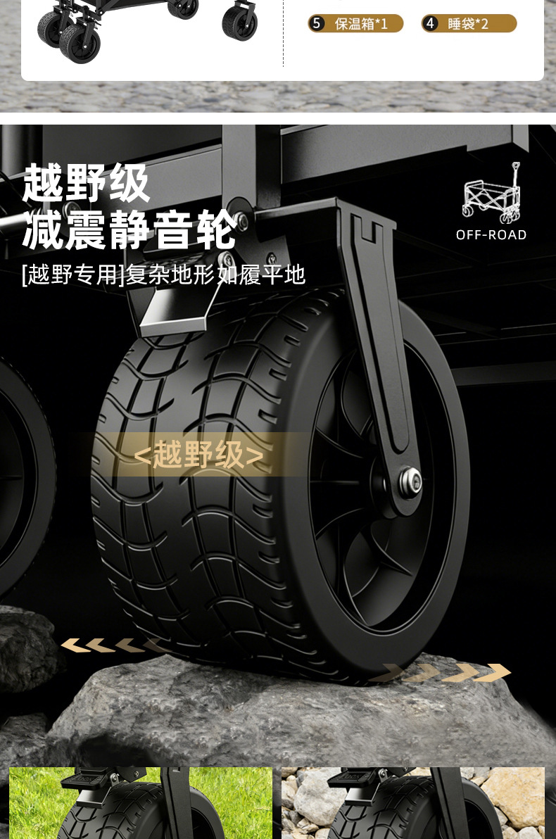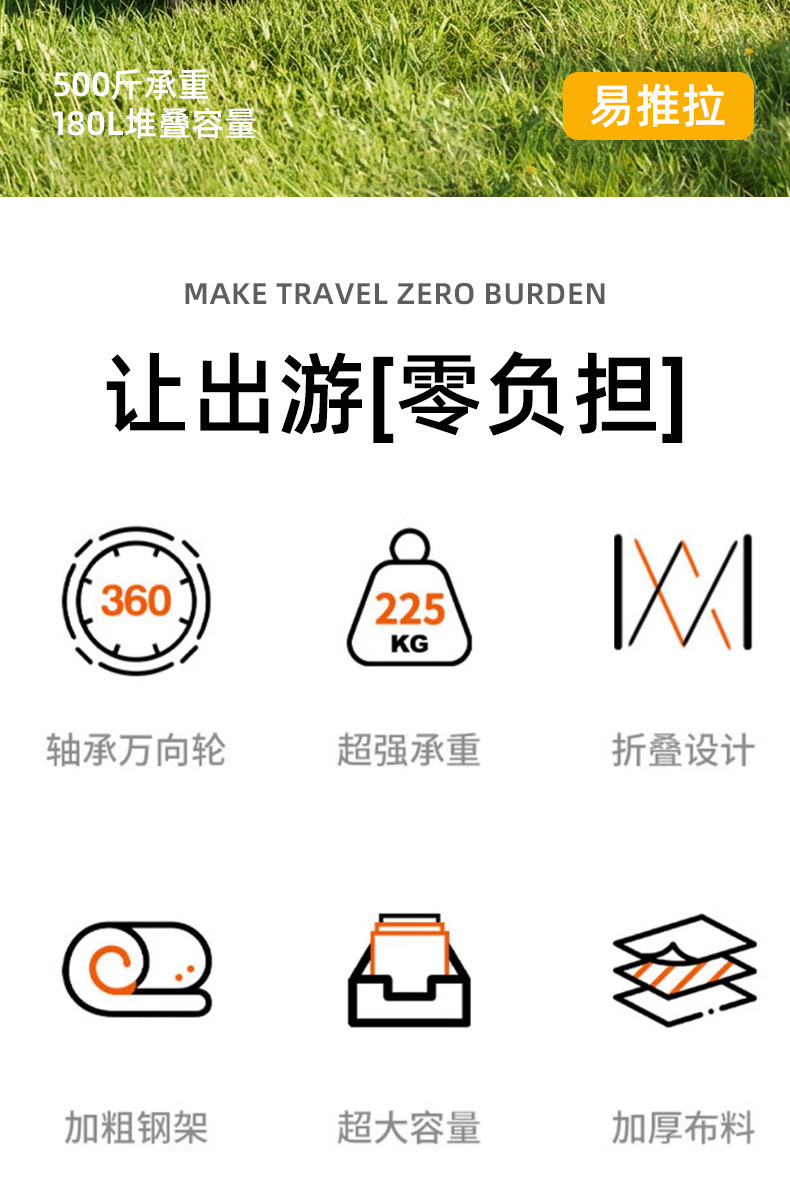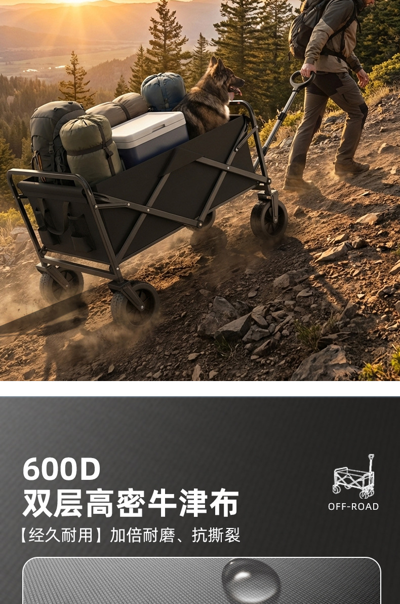 露營推車戶外營地折疊拖車兒童可躺旅行手推車野餐野營手拉車