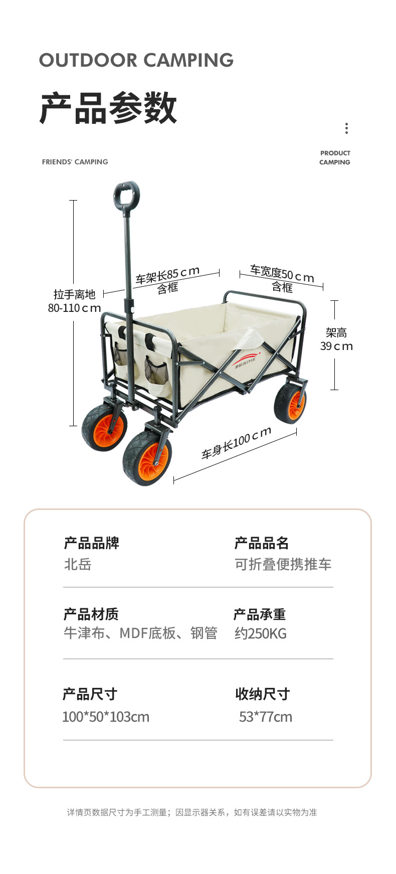 北嶽露營推車可折疊戶外手推野餐車營地拖車拉桿小拉車桌板野營車