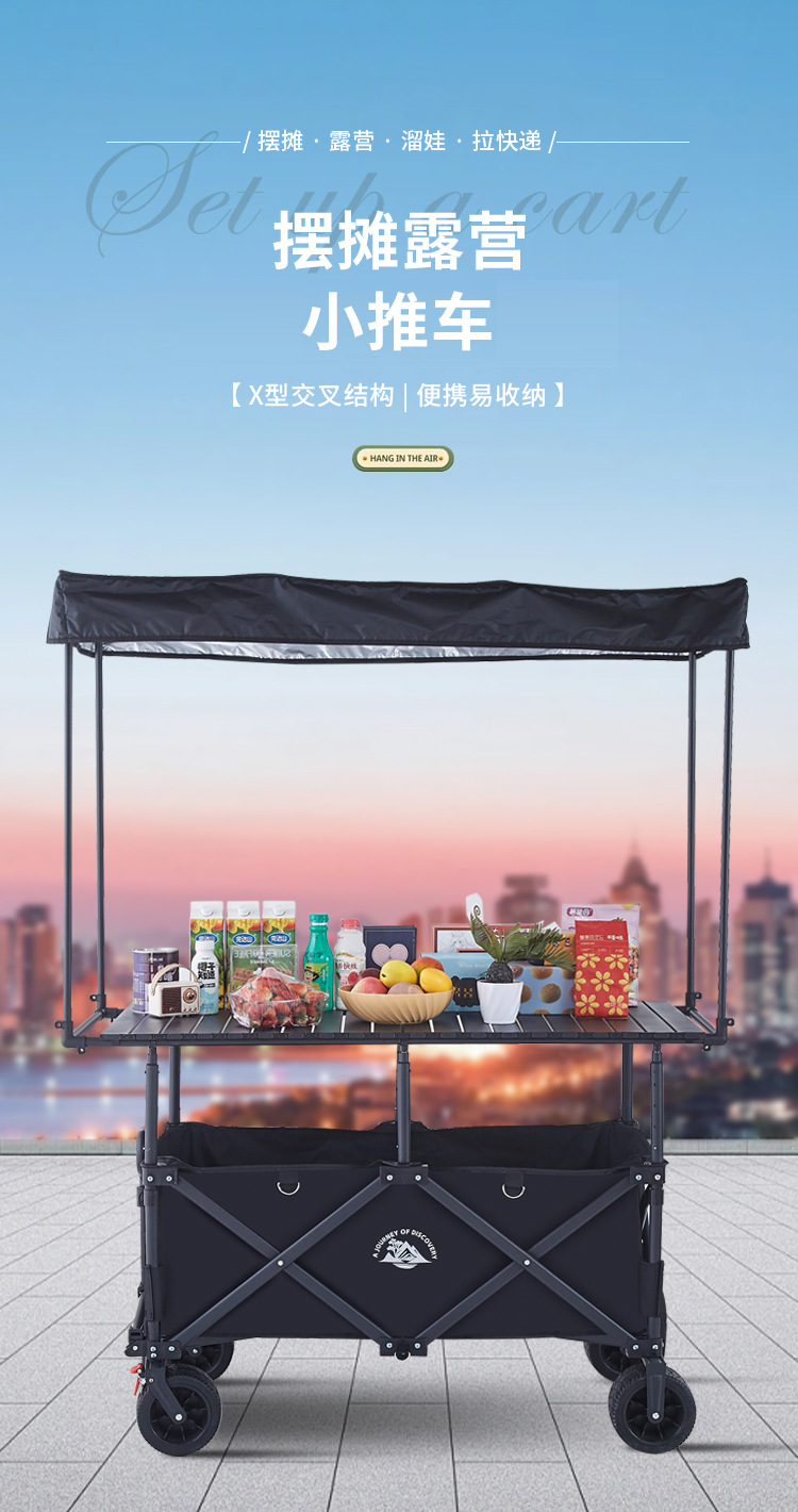 露營車擺攤小推車帶遮陽傘可升降夜市流動路邊攤小吃小推車
