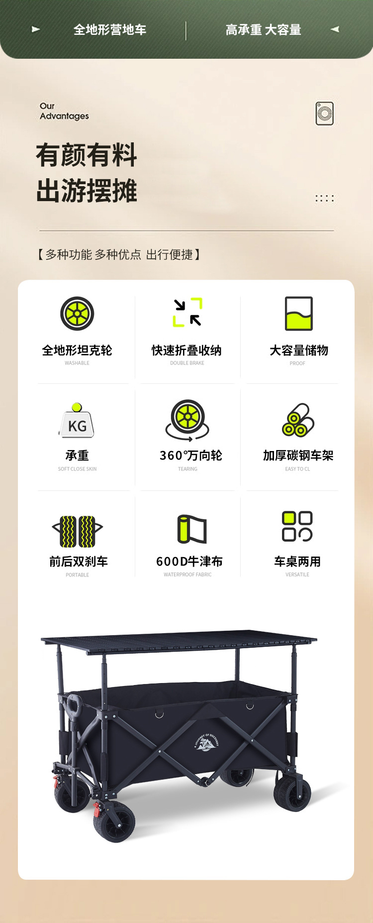 顔色 【橘色車架】167cm*60露營車+升降桌板+遮陽傘