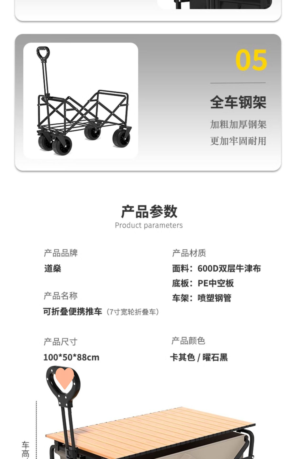 py戶外露營車可折疊手推車野營小拖車營地旅行車地攤野餐可攜式小拉