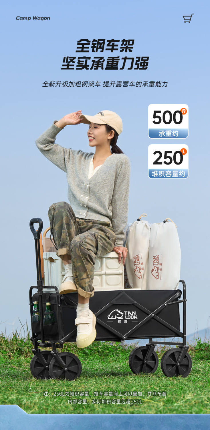 探露露營推車營地拖車戶外折疊野營手拉車小推車快遞車桌板