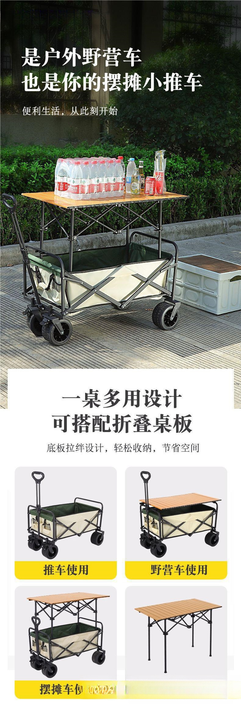 | 顔色 | 全地形十寸坦克輪卡其-營地車+加高加長擺攤桌子 |