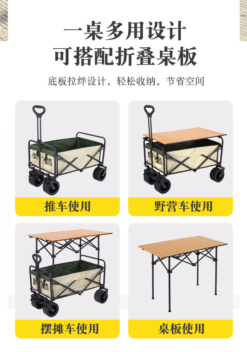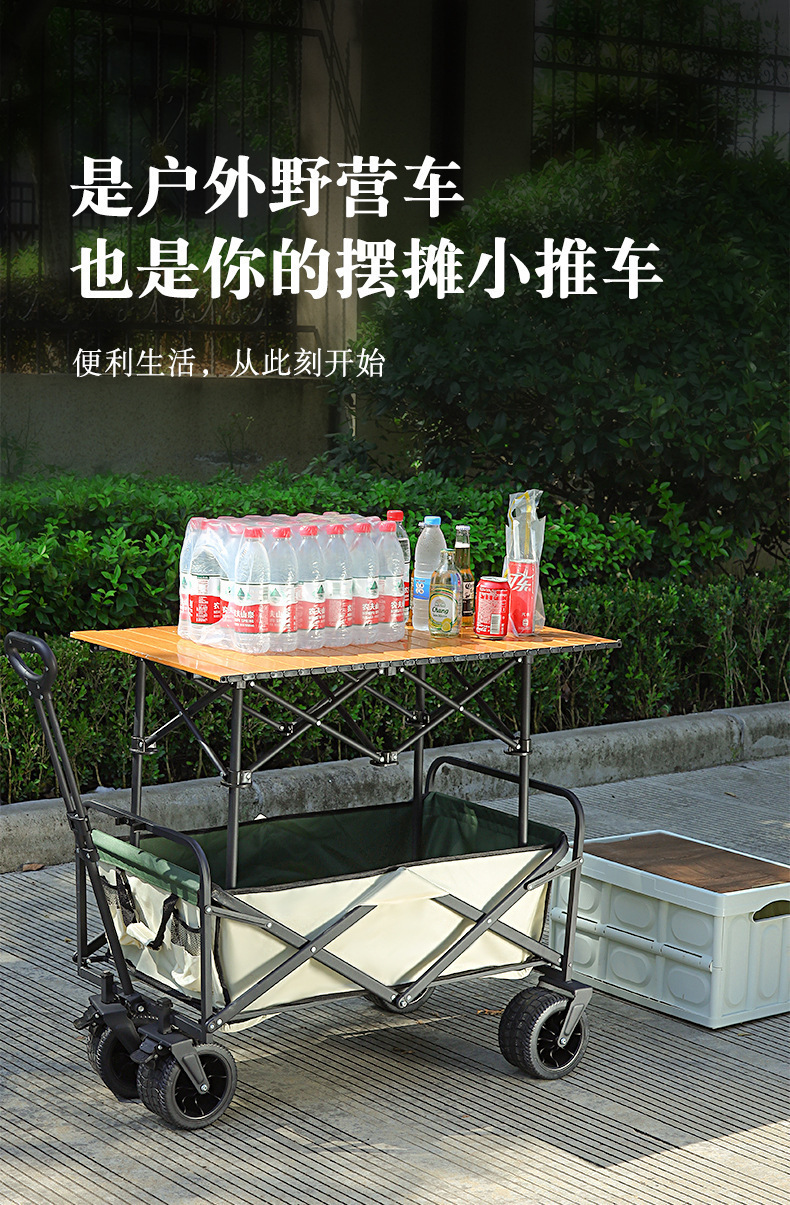 2025新款露營推車可折疊可升降桌戶外手推車營地車露營擺攤小推車