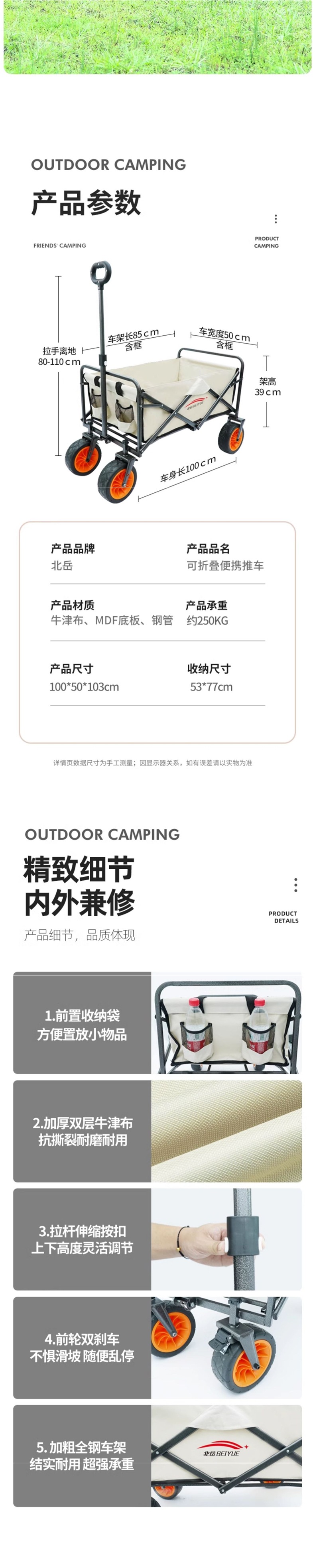 北嶽露營車大號戶外野餐車營地拖車拉桿小推車拉車桌板擺攤野營車