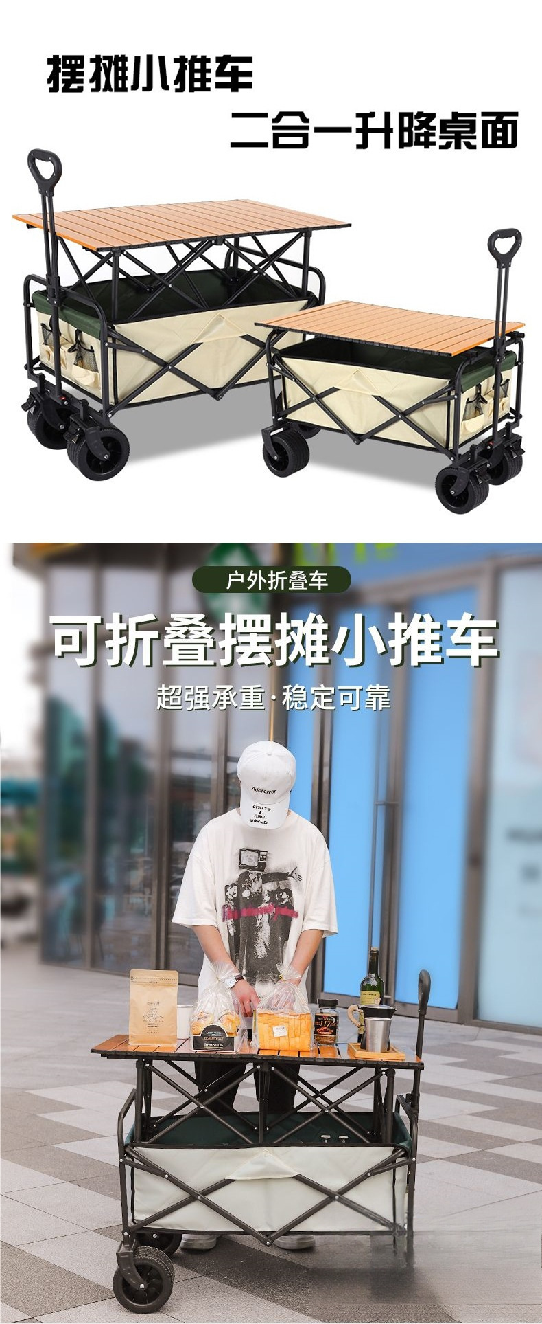| 顔色 | 營地車+加高加長擺攤桌子-大號窄輪(米綠) |