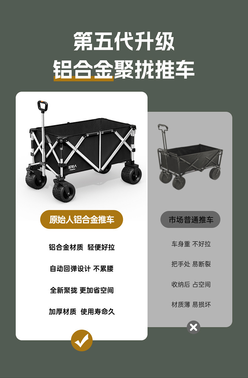 原始人露營推車營地車鋁合金聚攏戶外折疊野營野餐拖車手拉車