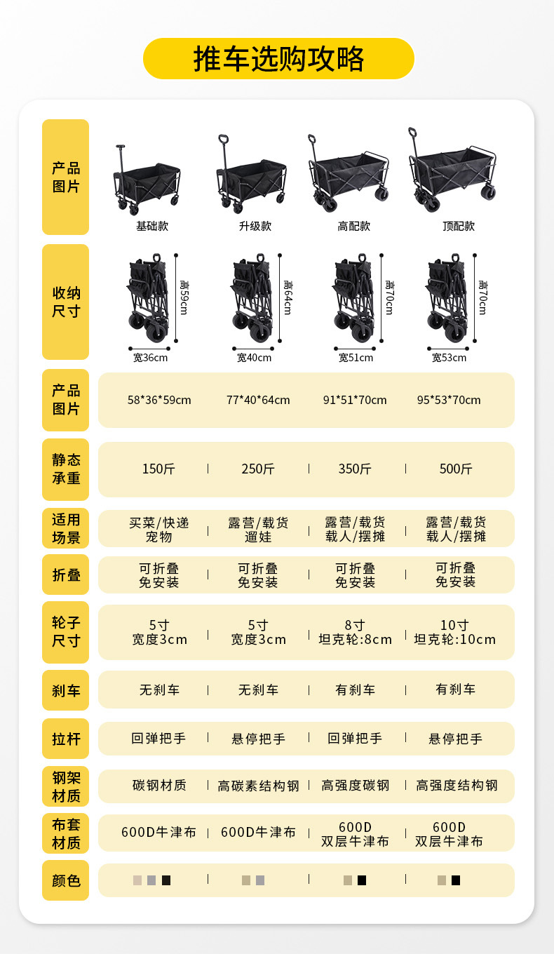 新款多功能野營手推車戶外可折疊露營手拉車家用可攜式營地車