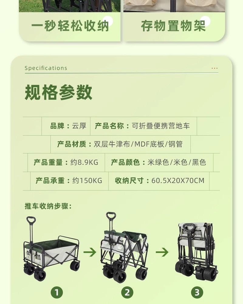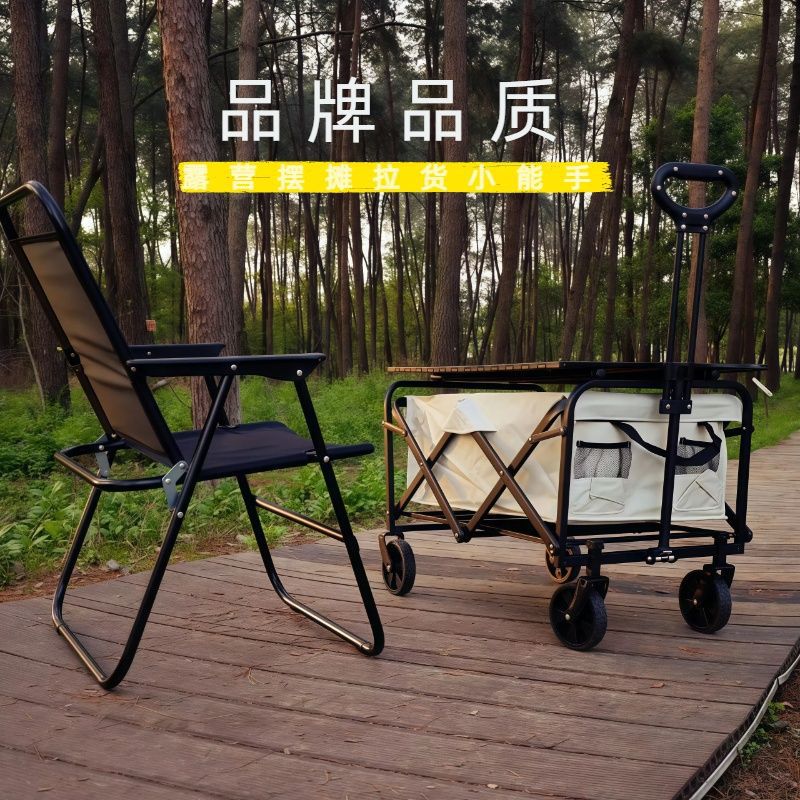 戶外可攜式營地車擺攤椅子可折疊野餐手推車野營拉桿拖車