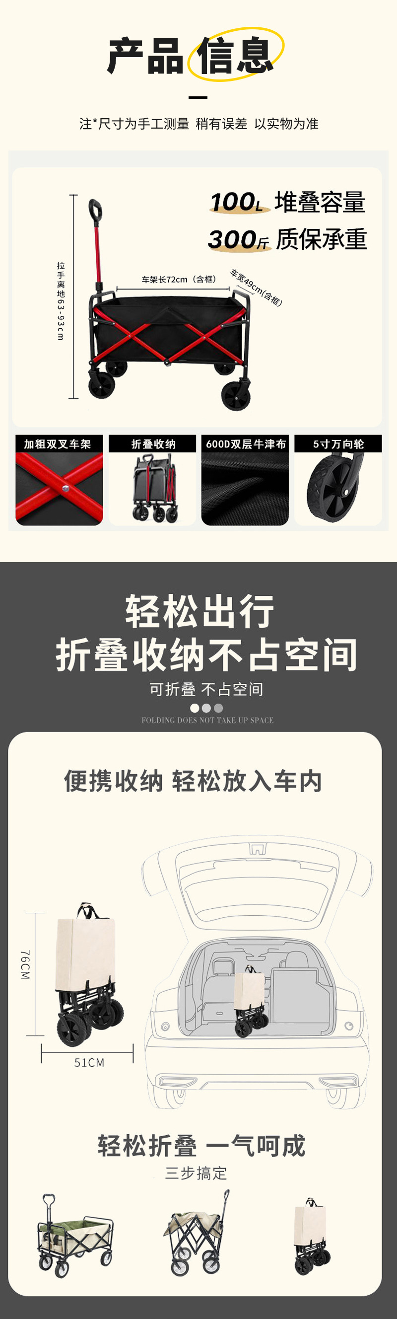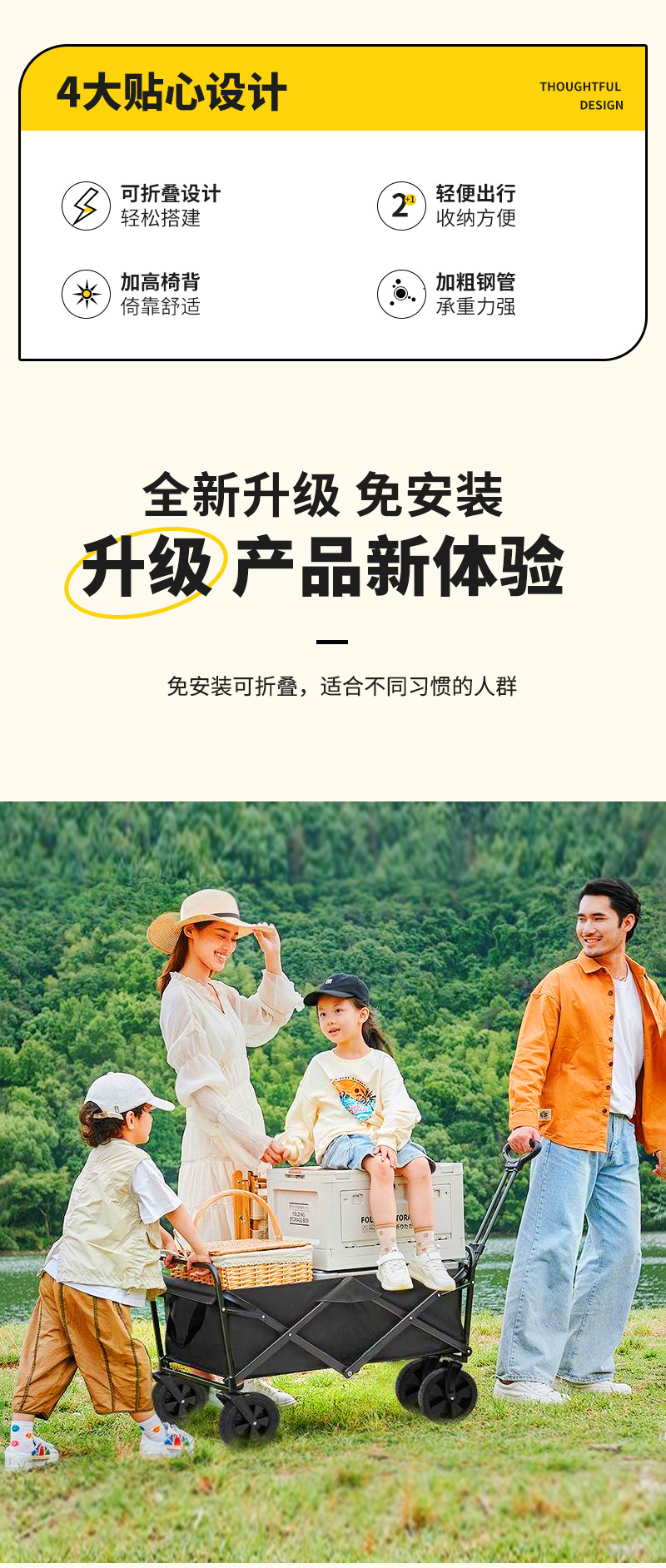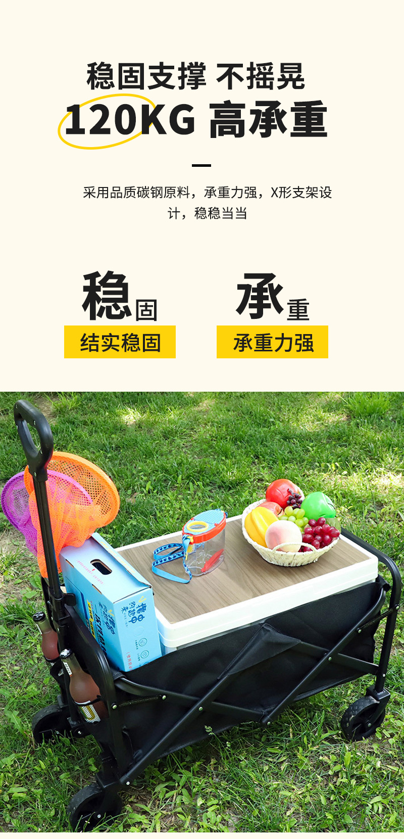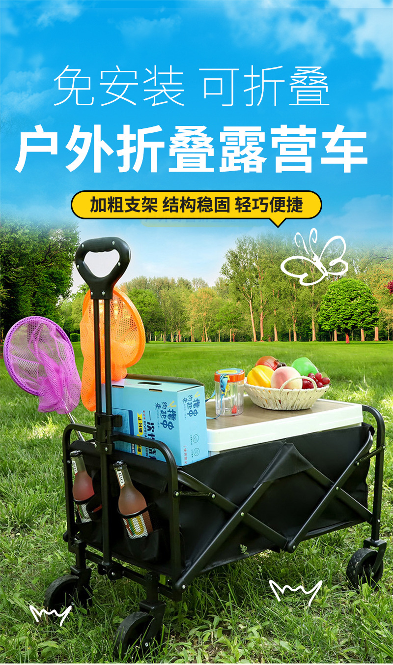 折疊露營野餐手推車戶手拉旅行戶外小推車可折疊擺攤營地可攜式野營