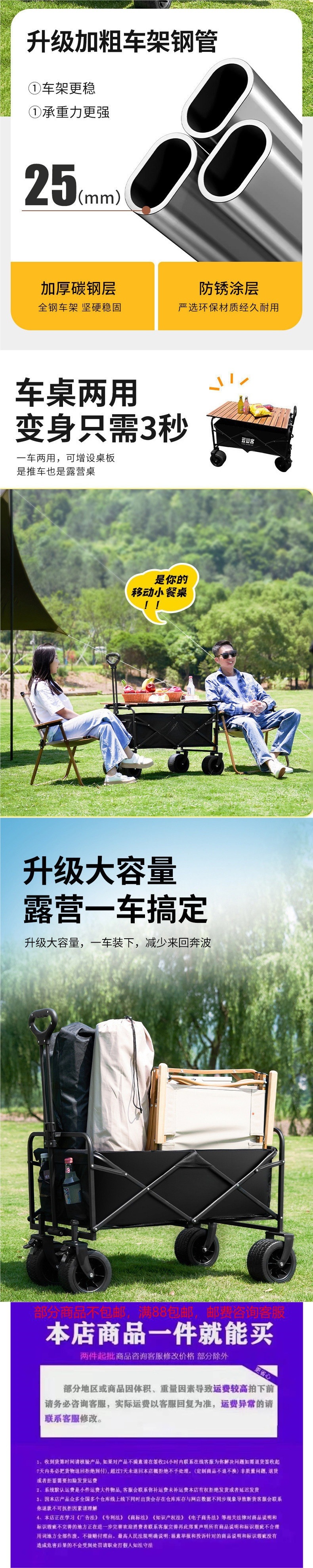 露營車戶外可折疊推車營地車野餐車拖車野營手拉桿擺攤小推車