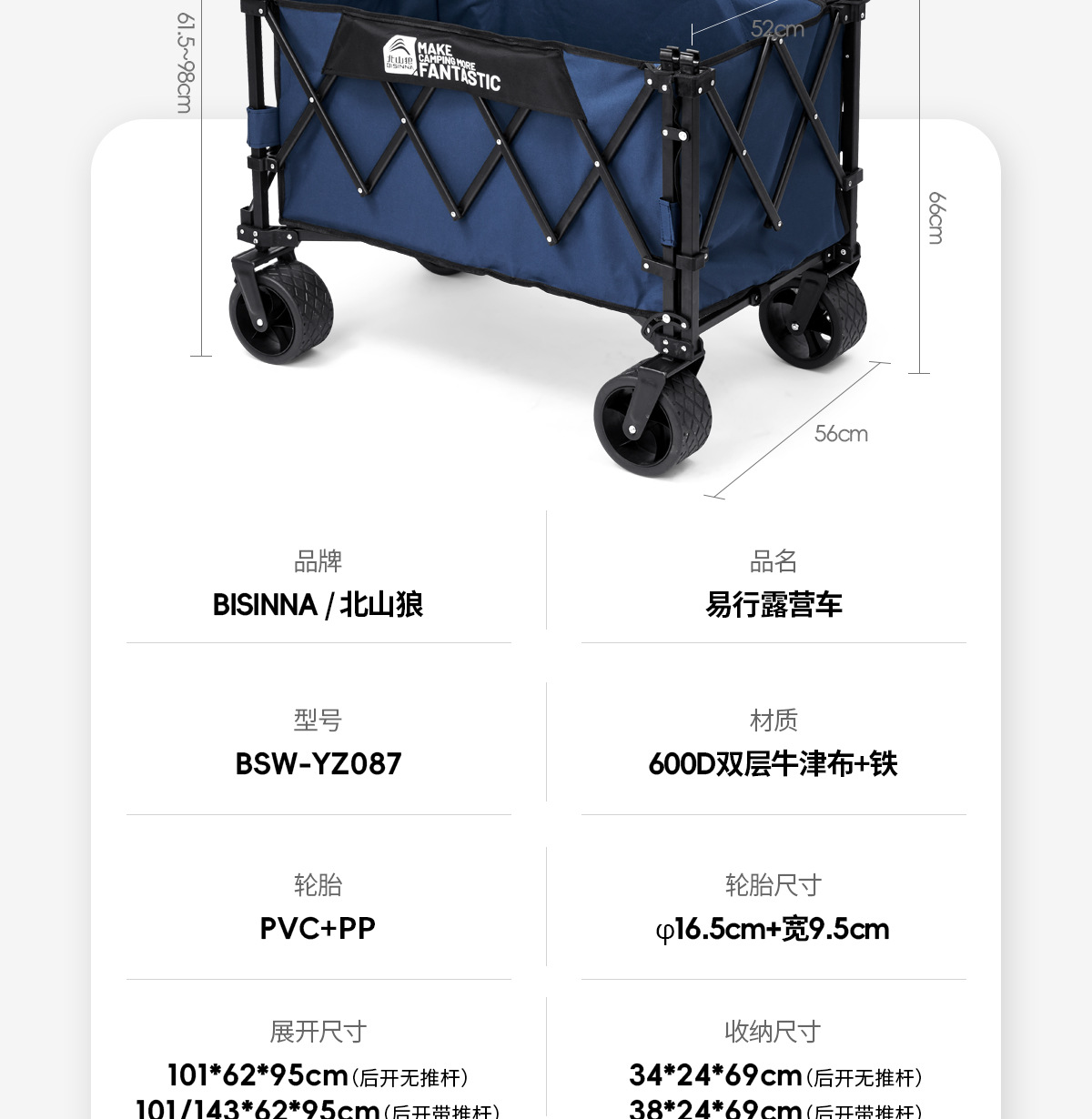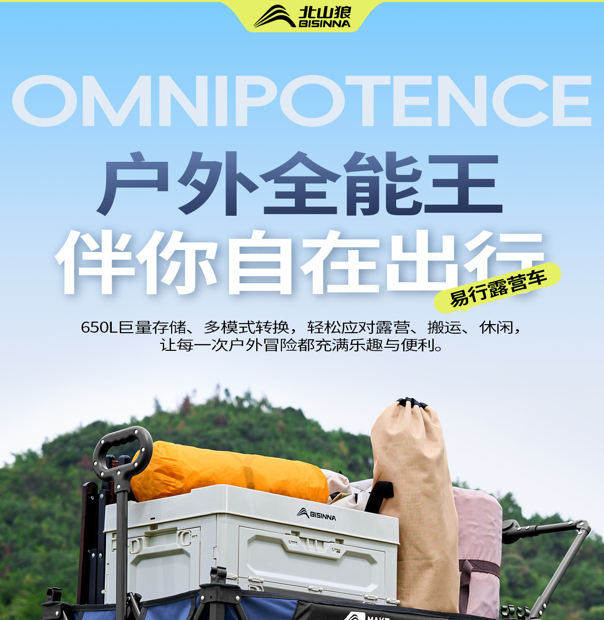 北山狼露營車野營推車戶外折疊推車野餐擺攤拖車可攜式家用營地車
