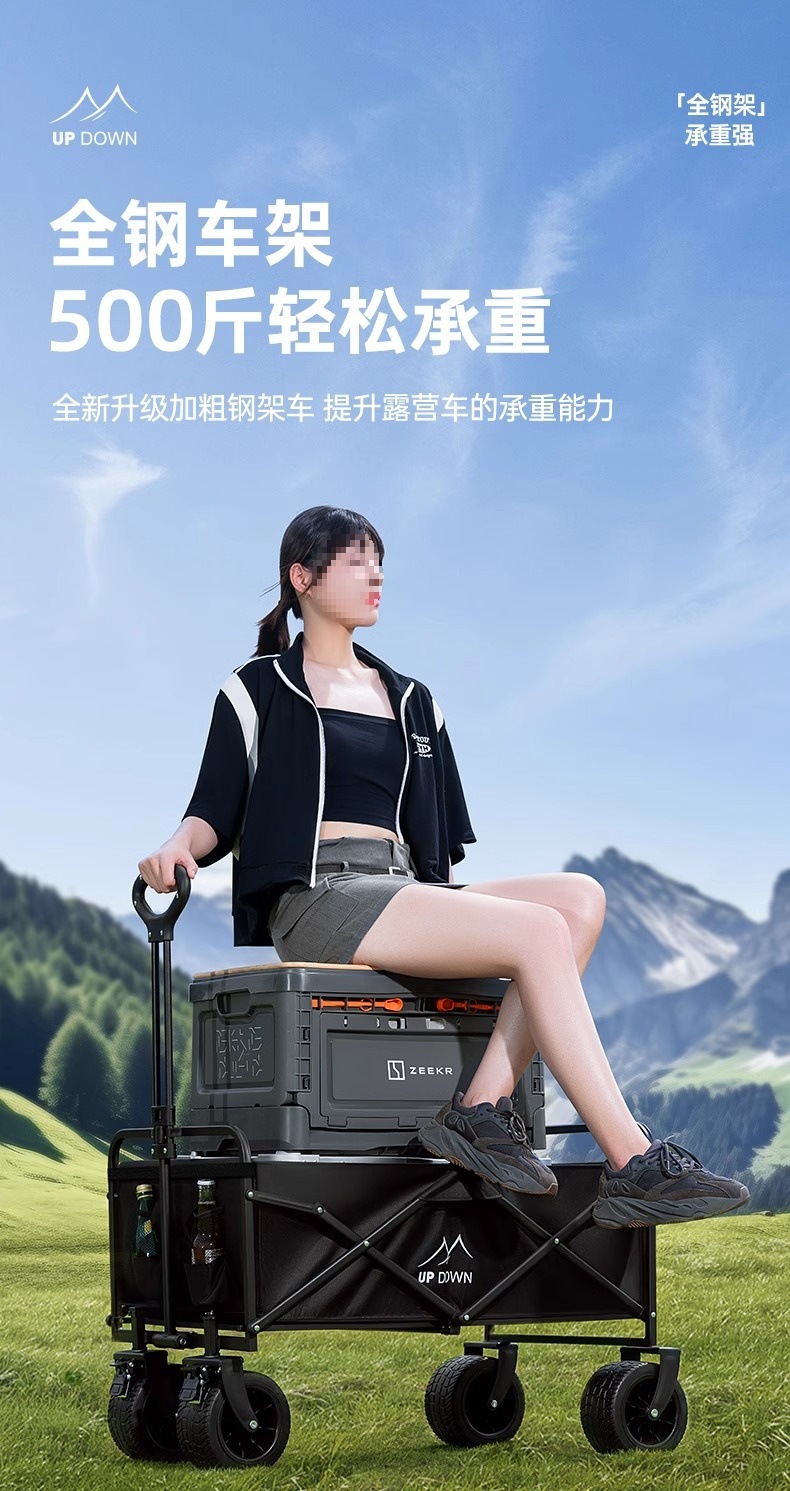 露營車戶外可折疊營地車野營兒童可躺擺攤拖車野餐小推車可攜式