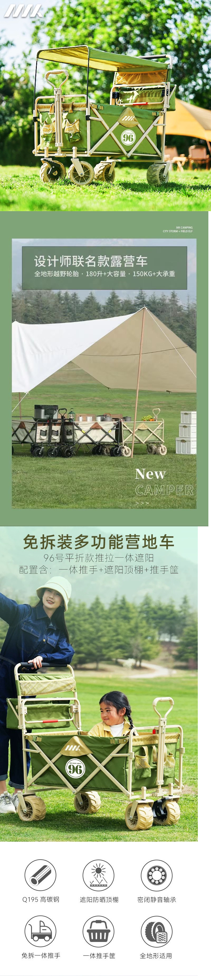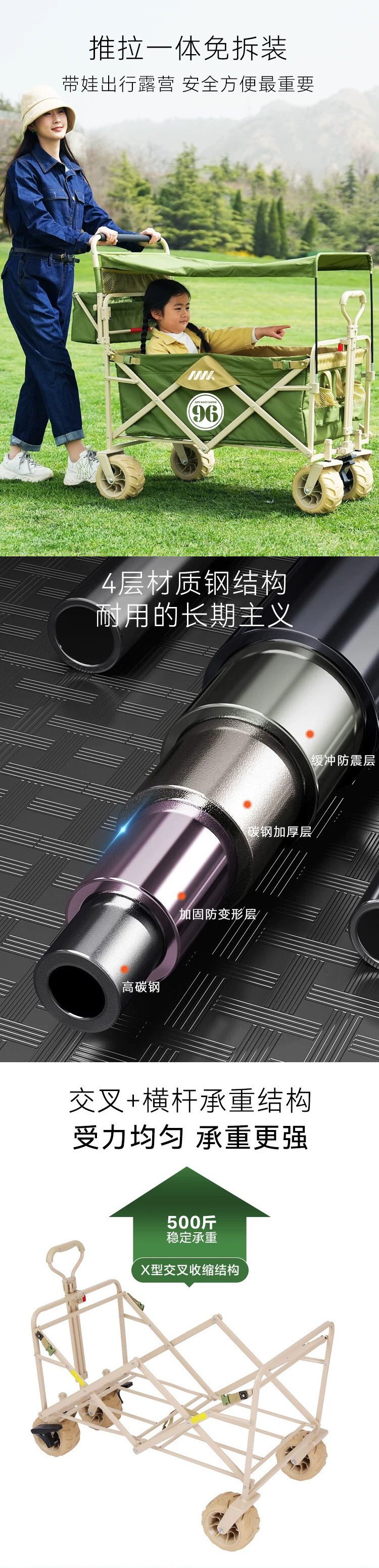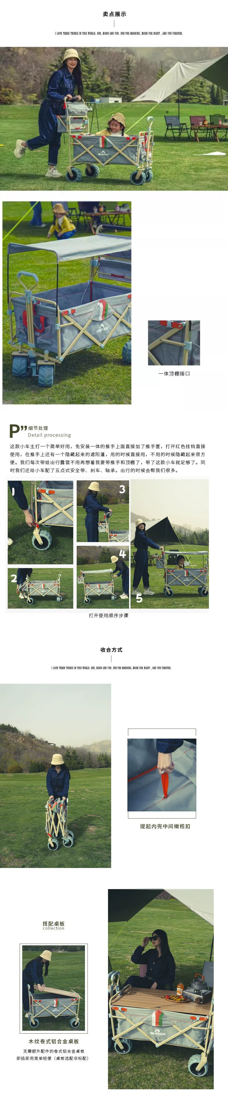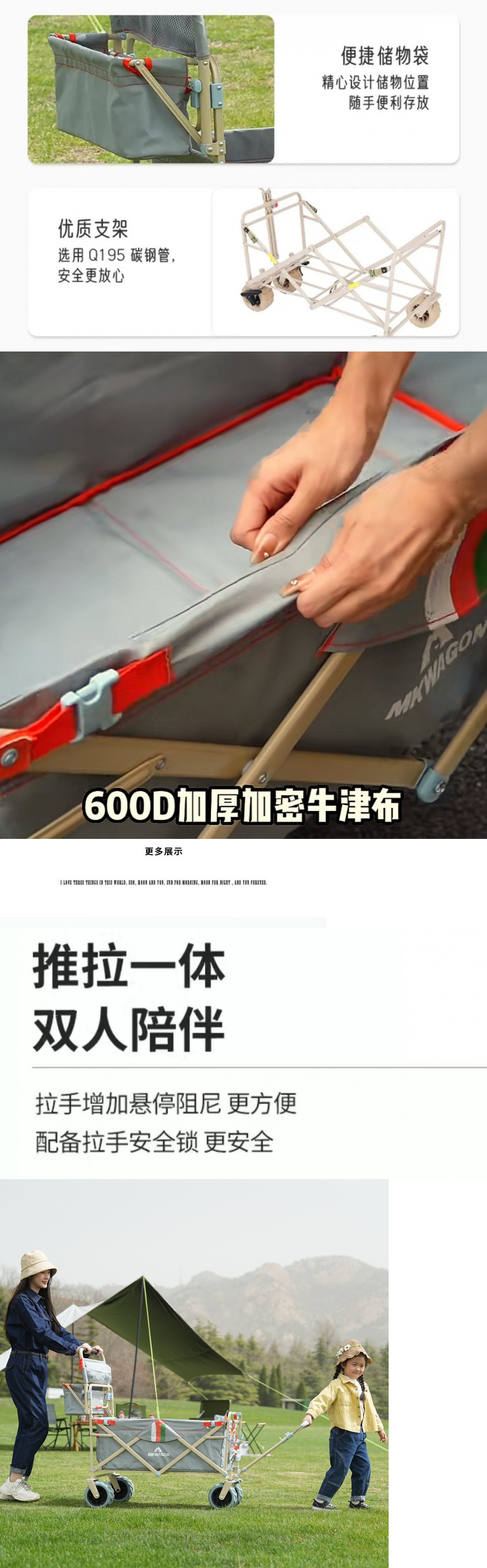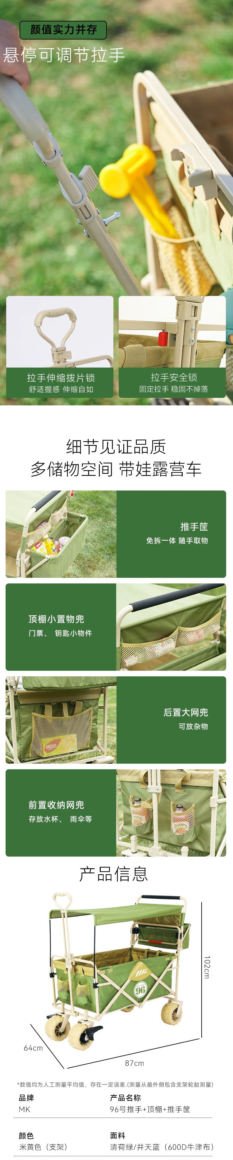 戶外露營車推拉兩用防曬野餐手推車可躺野營拖車可折疊親子車外出