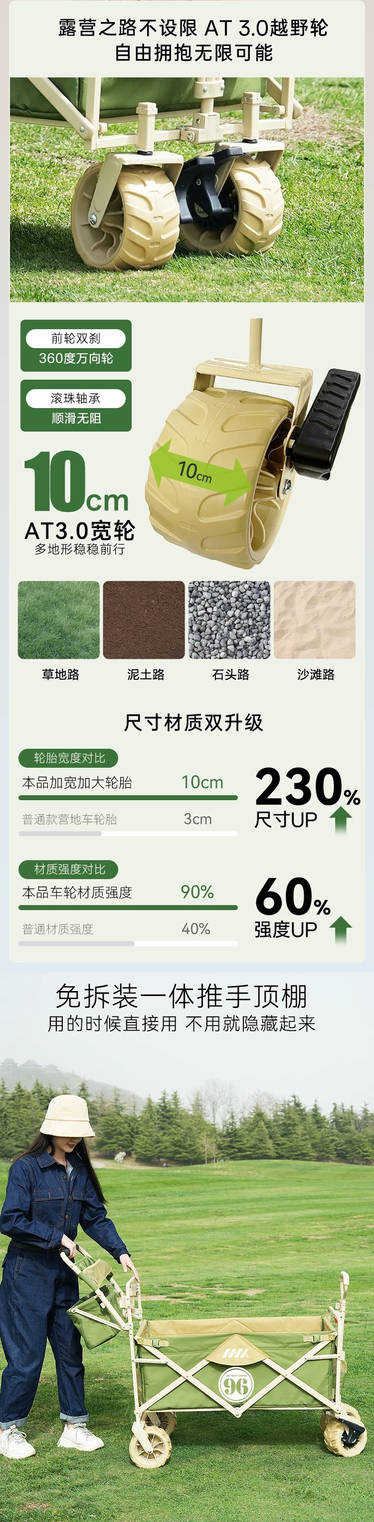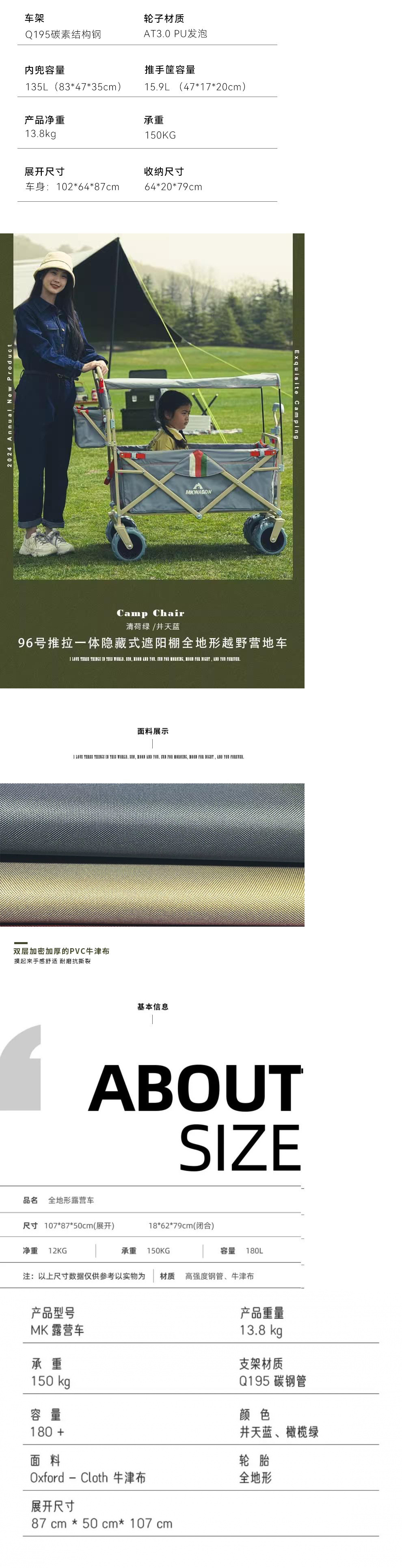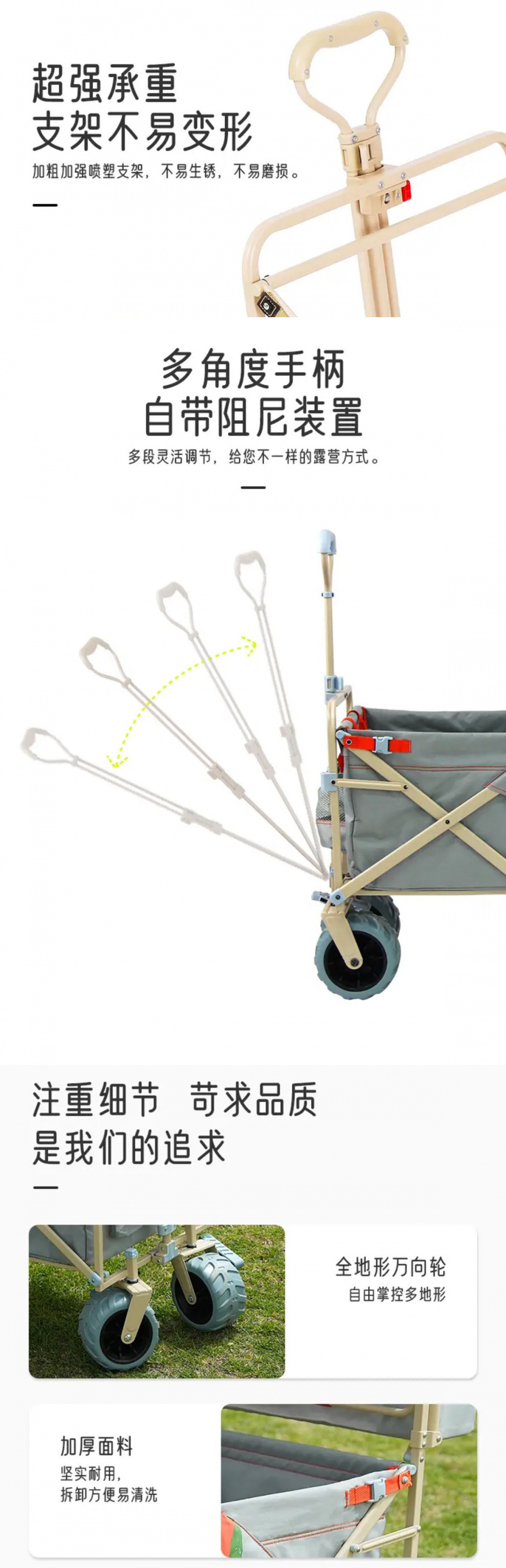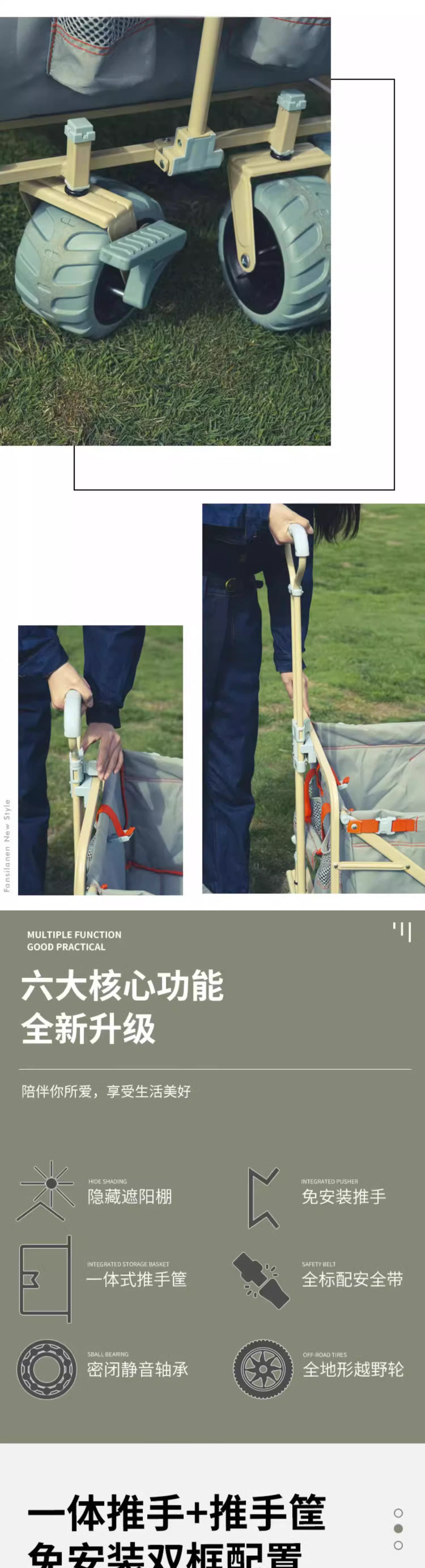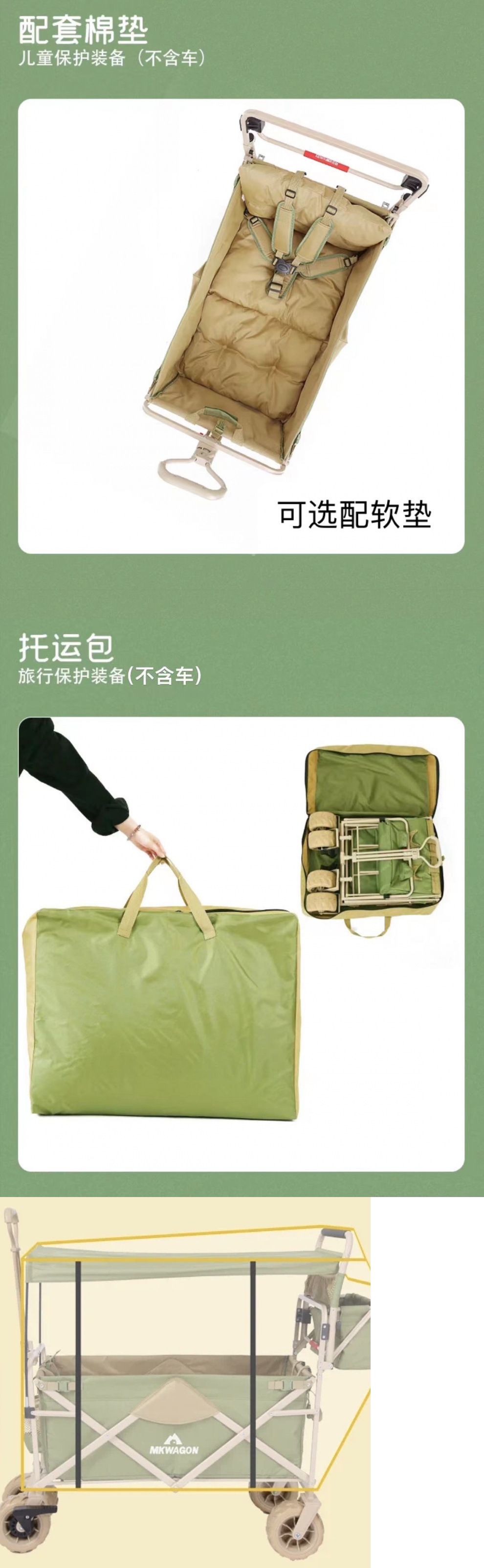 戶外露營車推拉兩用防曬野餐手推車可躺野營拖車可折疊親子車外出
