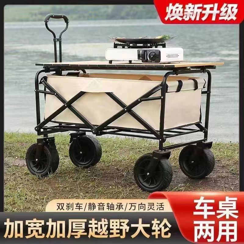 戶外露營可攜式擺地攤推車擺攤折疊桌升降桌擺攤可霤娃加粗加厚輪