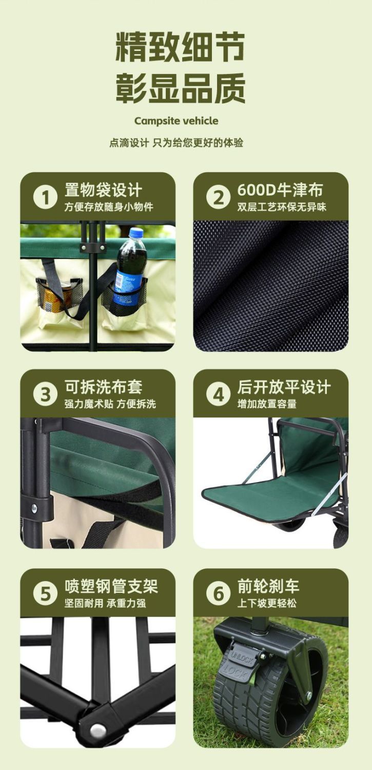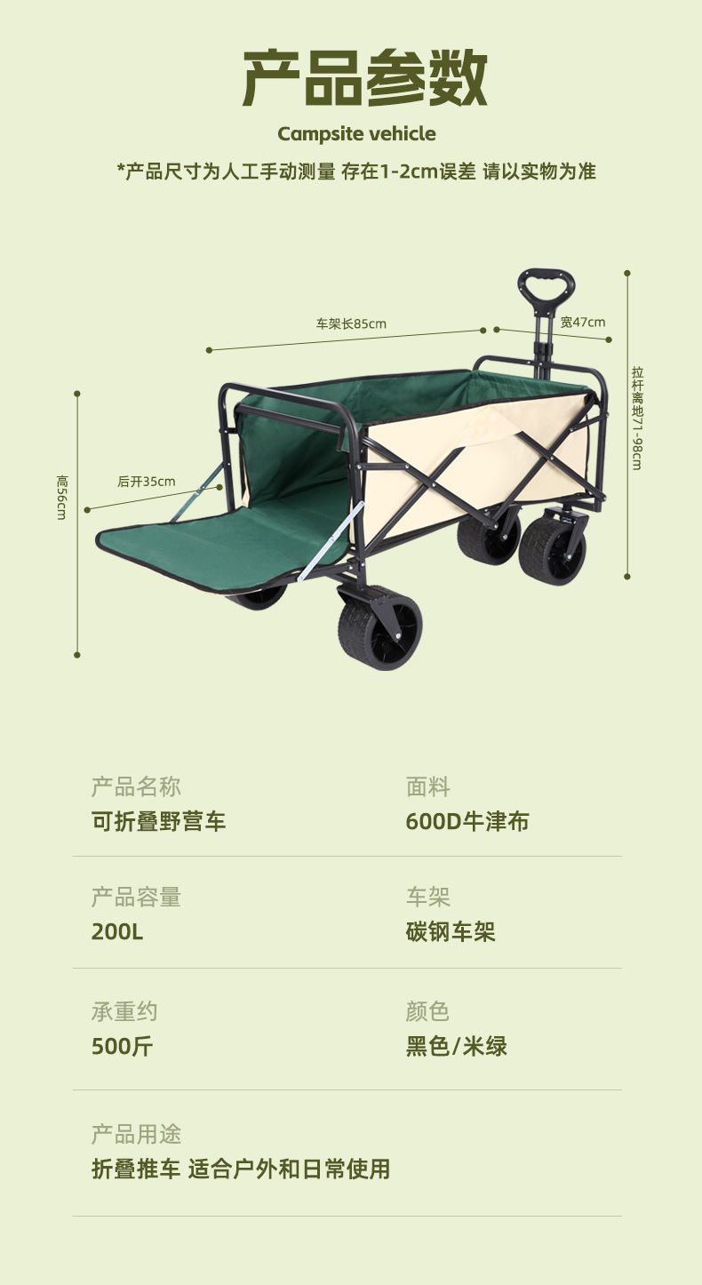 | 顔色 | 米綠色【雙層600D牛津布】不虛標-超級輪胎/拖鬥款10寸坦克輪+加高折曡桌子 |